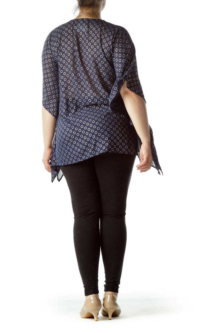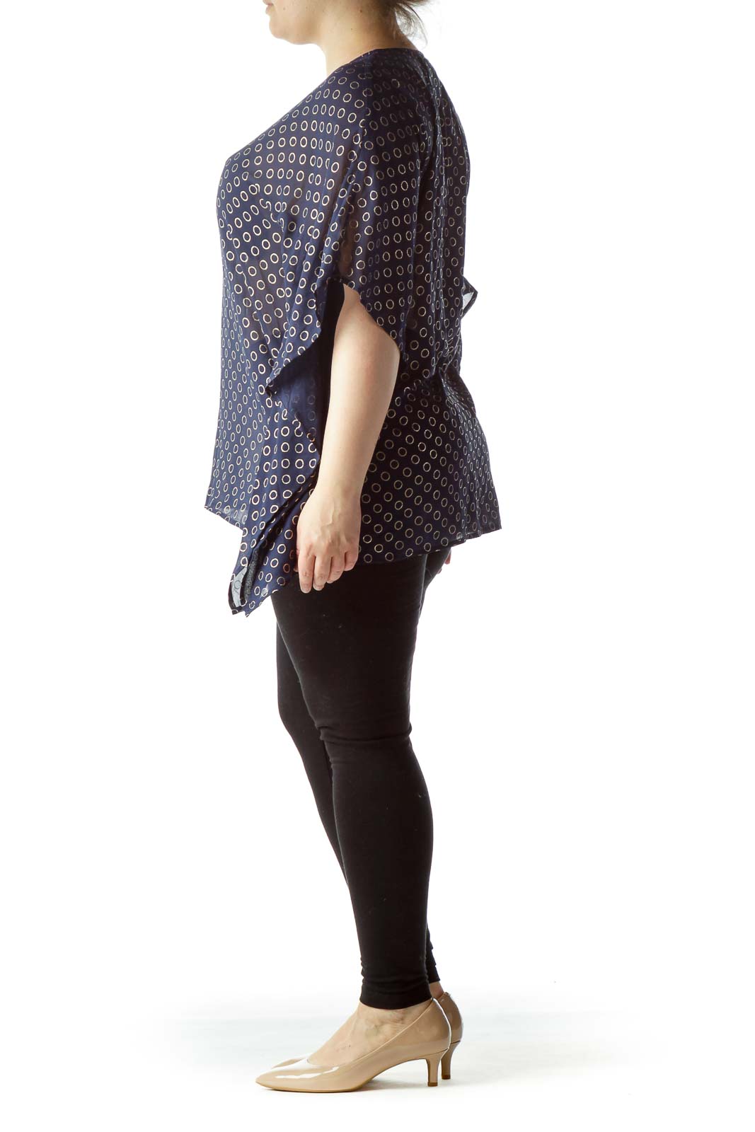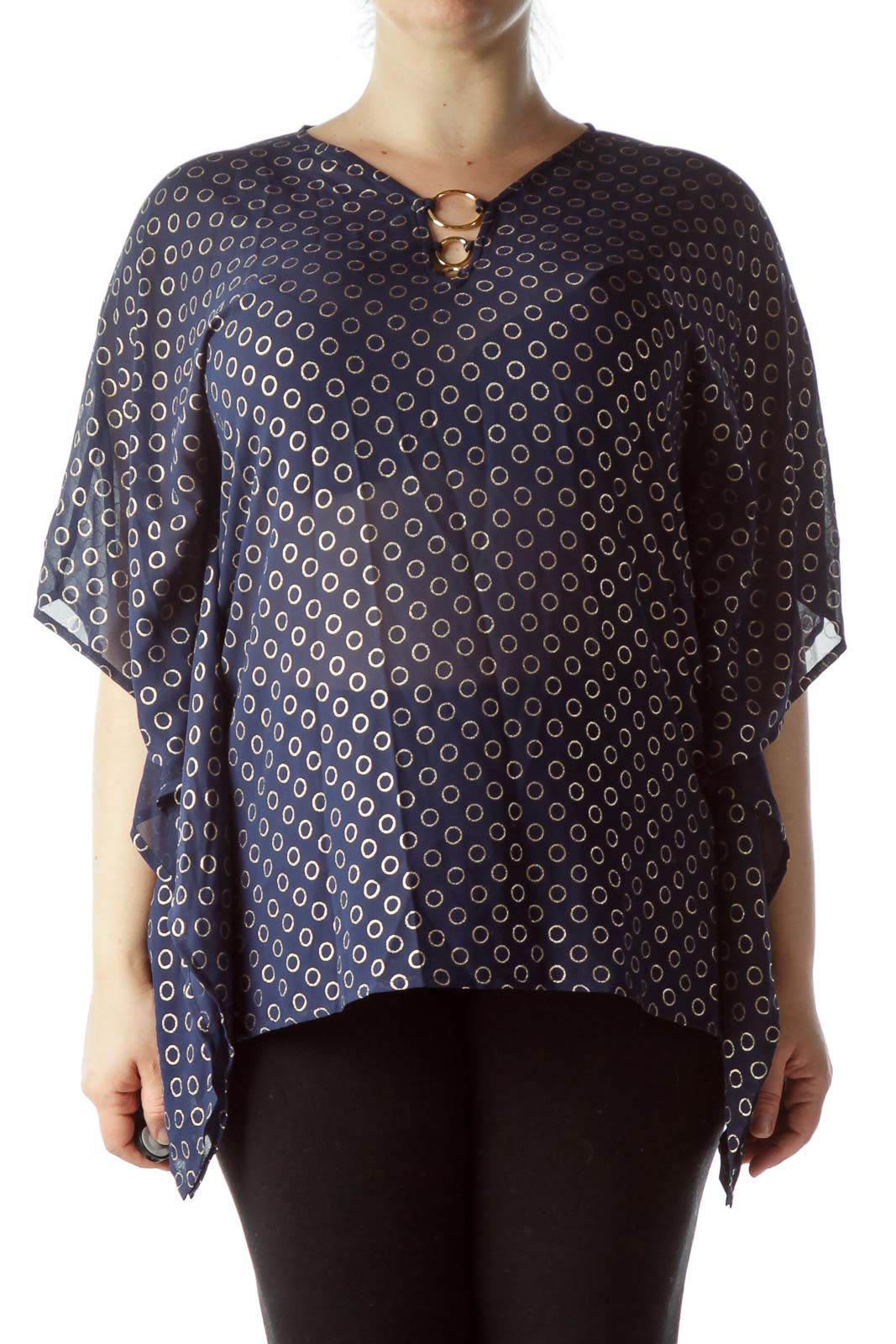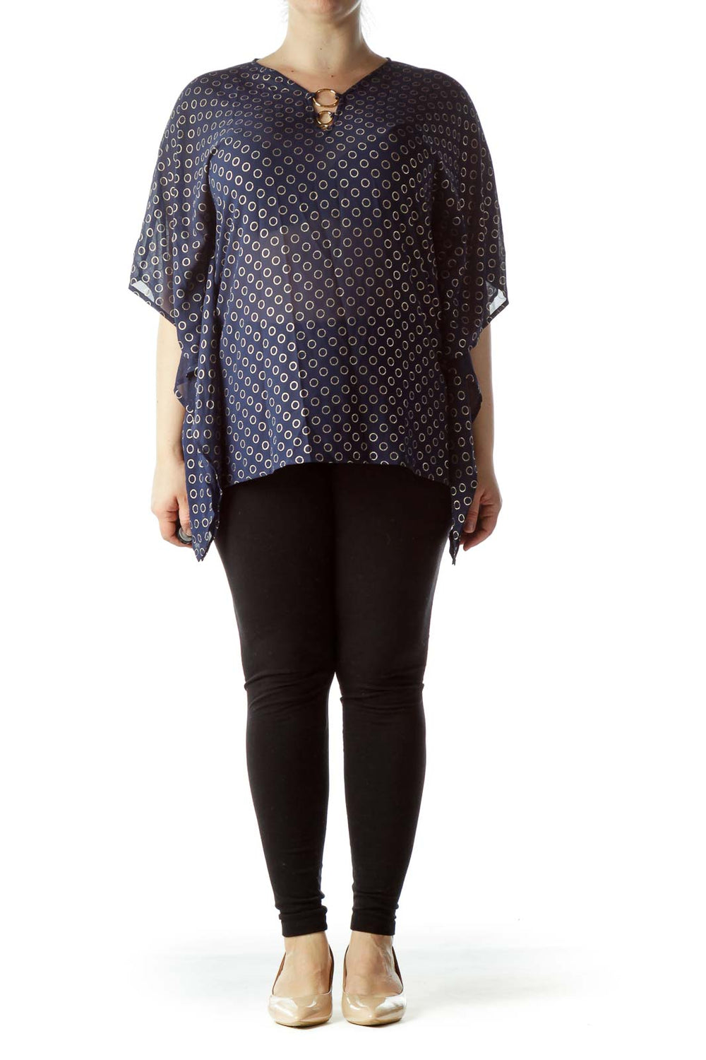 Elevate your wardrobe with this chic navy polka dot blouse from MICHAEL Michael Kors. The flowing silhouette features elegant batwing sleeves that create a graceful, draped effect, perfect for both casual and dressier occasions. A unique gold ring detail at the neckline adds a touch of sophistication, while the lightweight fabric ensures comfort and ease of movement.