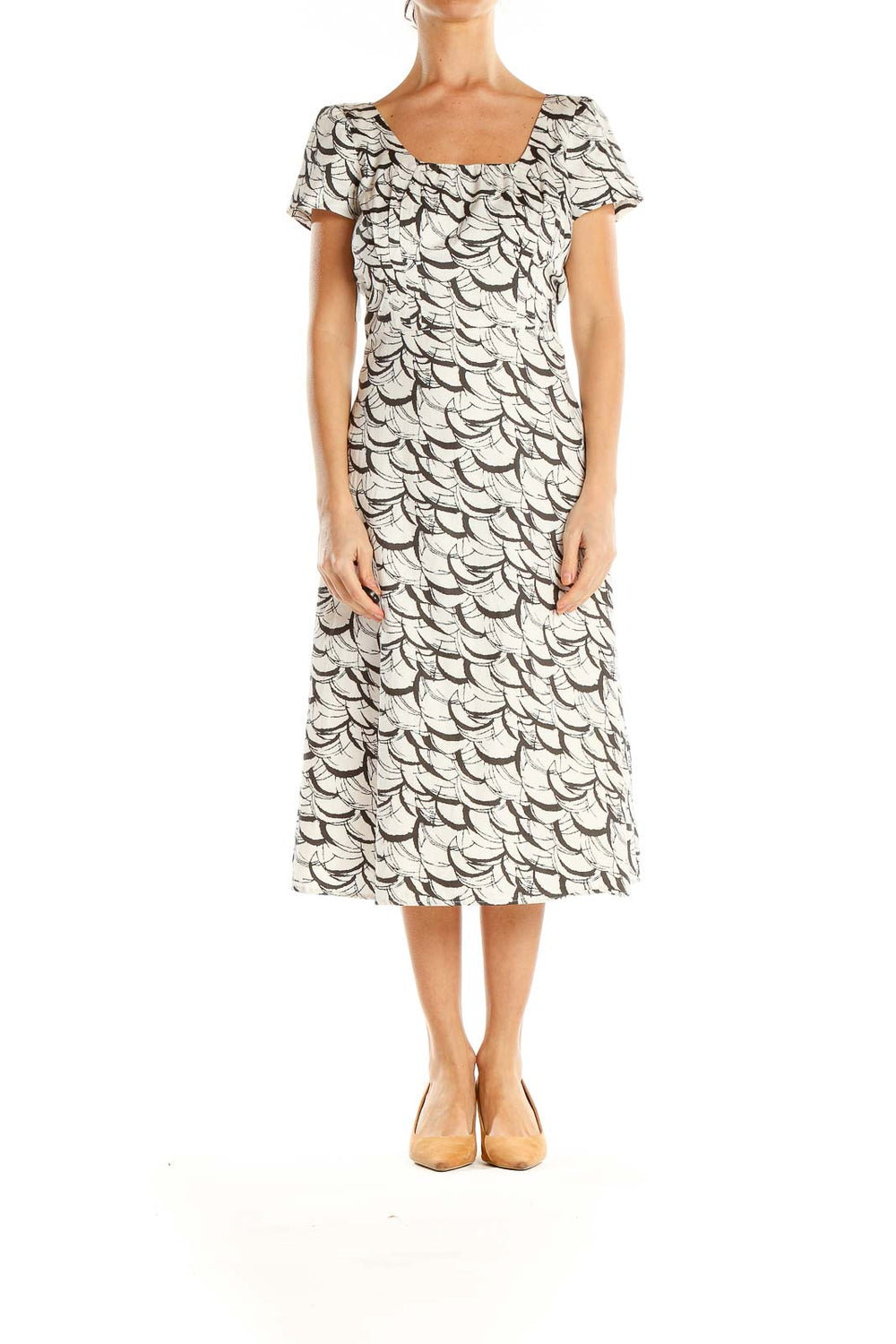 White Gray Printed A-Line Dress