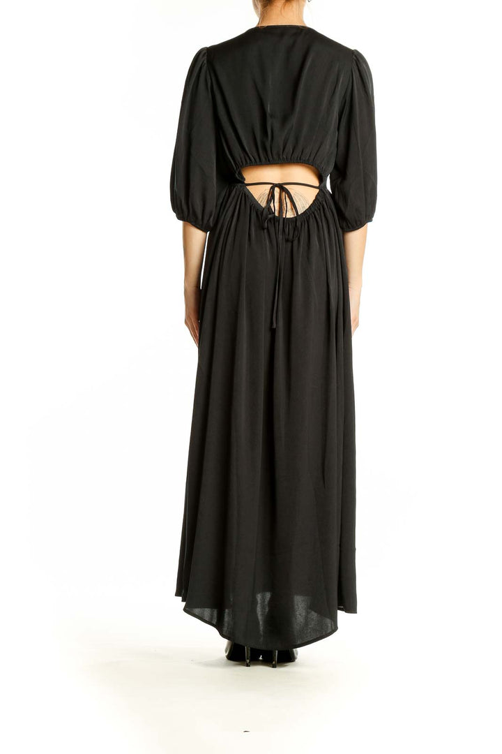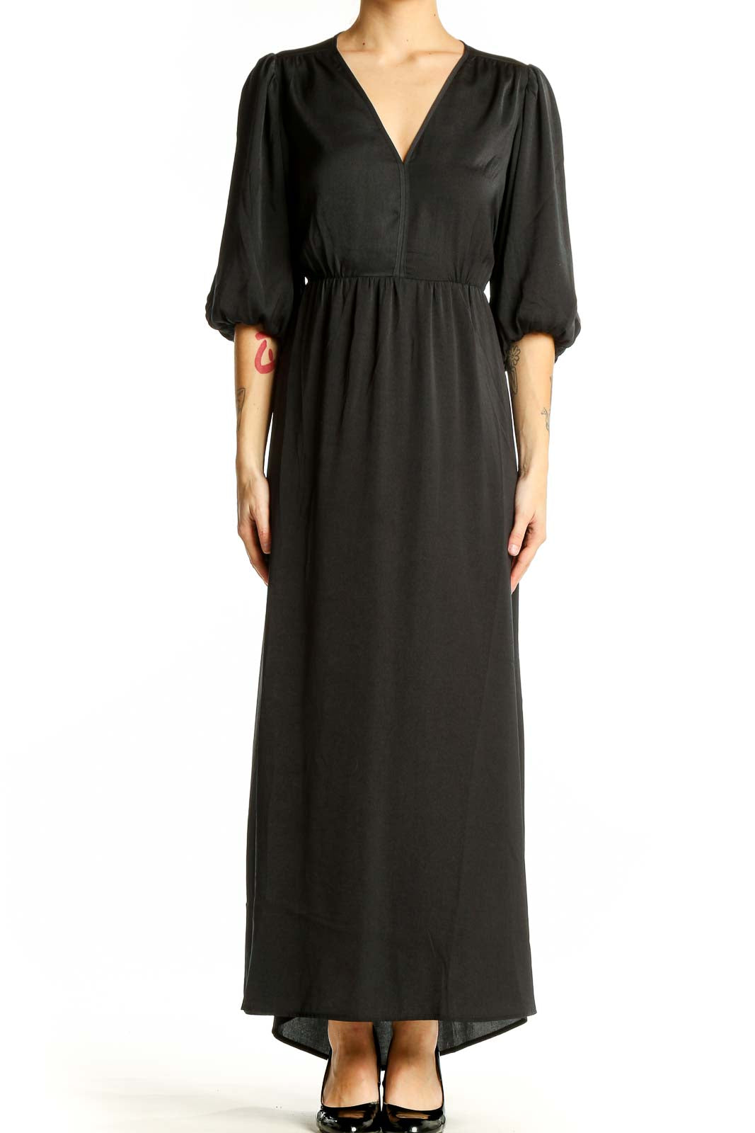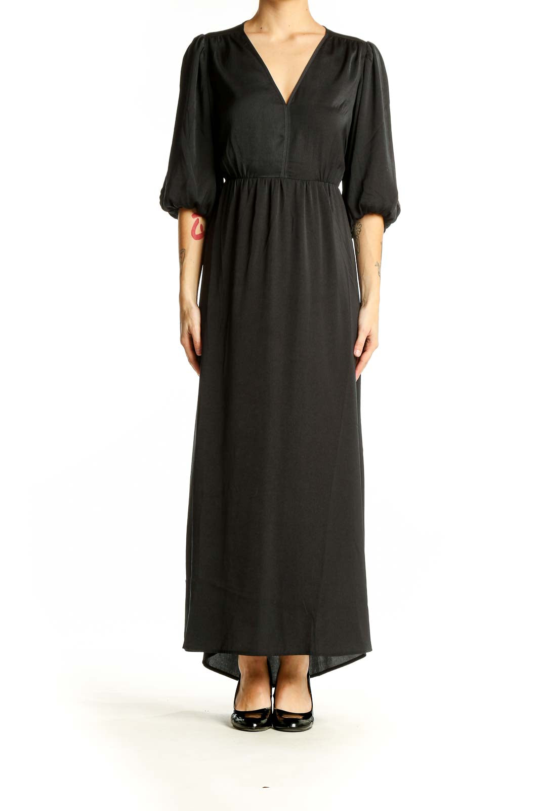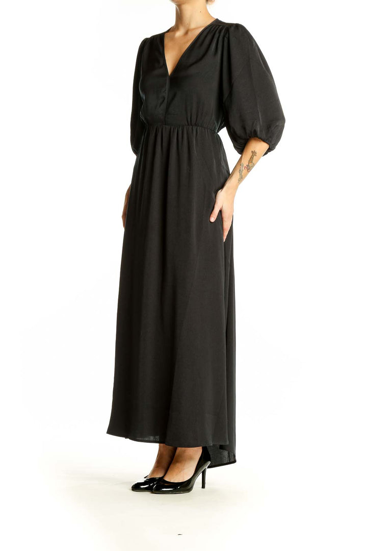 Make a statement with this stunning black maxi dress from Gap. The elegant V-neckline and flowing silhouette create a flattering and sophisticated look, perfect for both formal events and casual outings. The dress features eye-catching balloon sleeves that add a touch of drama and contemporary flair to the classic design.