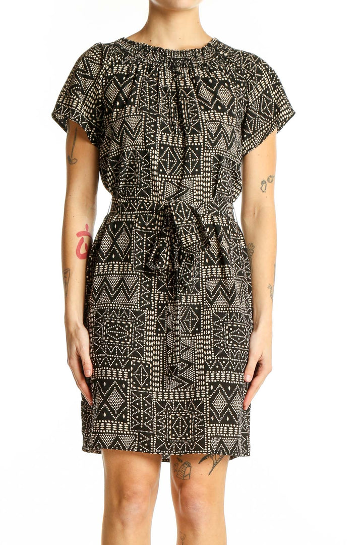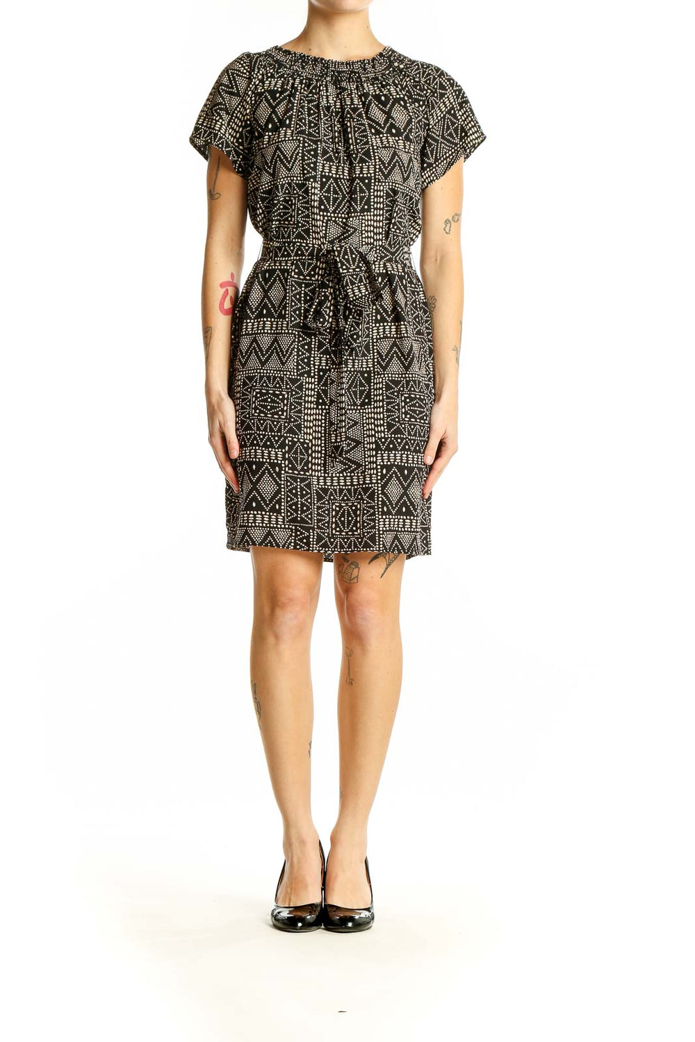 Make a statement with this eye-catching black and white geometric print dress from Veronica M. The bold, intricate pattern features a mix of tribal-inspired shapes and zigzag designs that create a visually striking look. Crafted from soft, lightweight polyester, this dress offers both comfort and style for any occasion.