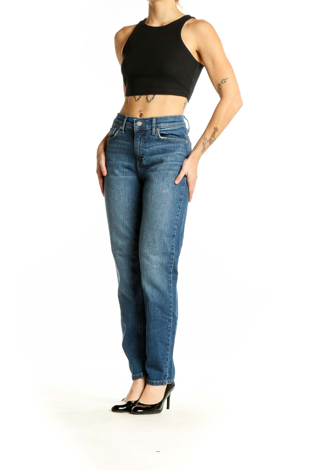 Step into timeless style with these classic straight leg jeans from Banana Republic. Crafted from a comfortable blend of cotton, elastane, and spandex, these jeans offer both durability and flexibility for all-day wear. The medium wash blue denim creates a versatile look that pairs effortlessly with any outfit.