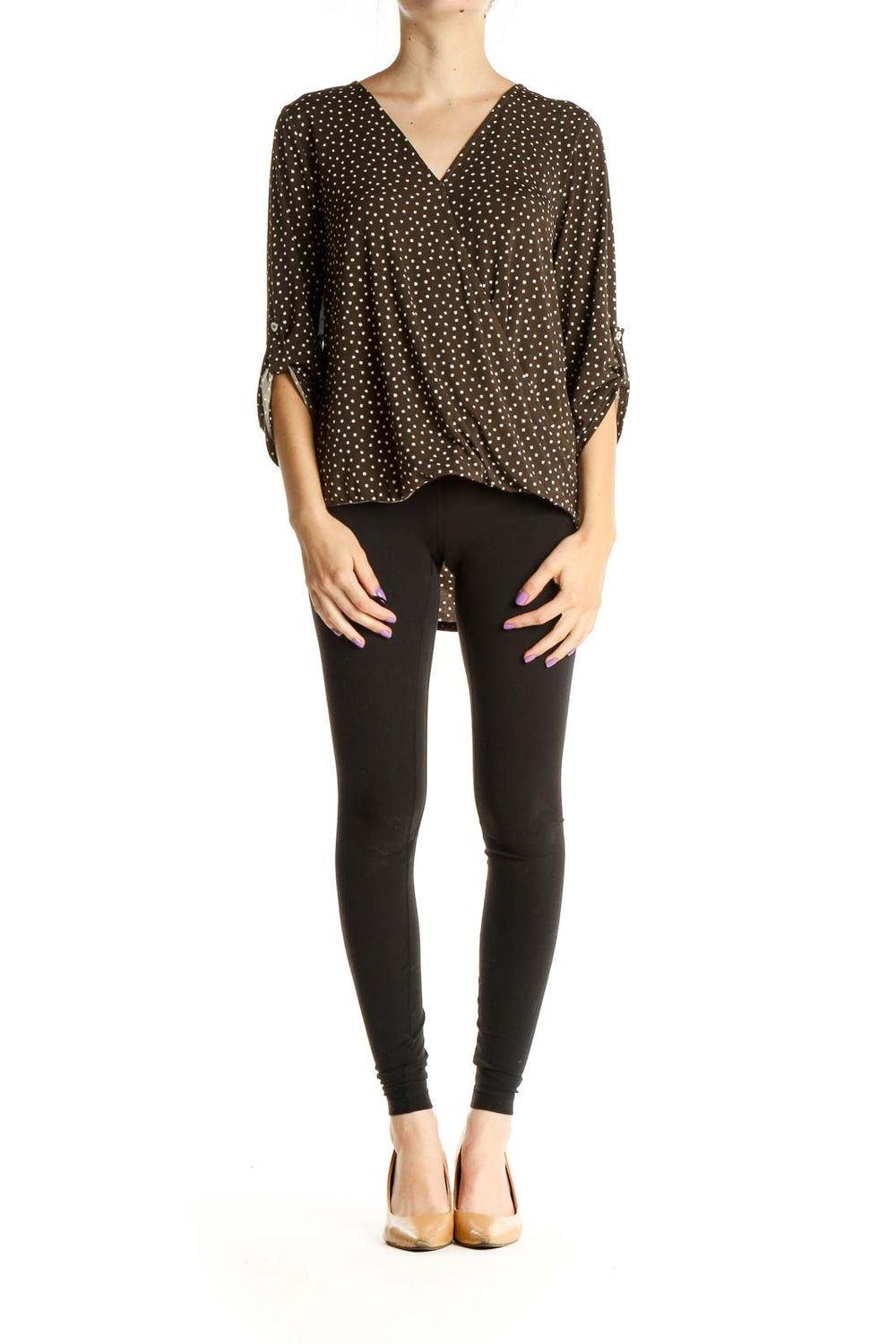 - Measurements: Bust 36", Hips 42", Length 27", Waist 38"