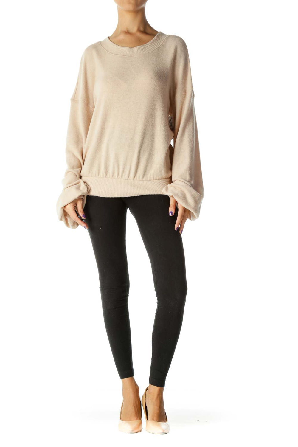 Light Peach Round Neck Super Soft Touch Bishop Sleeves Sweater