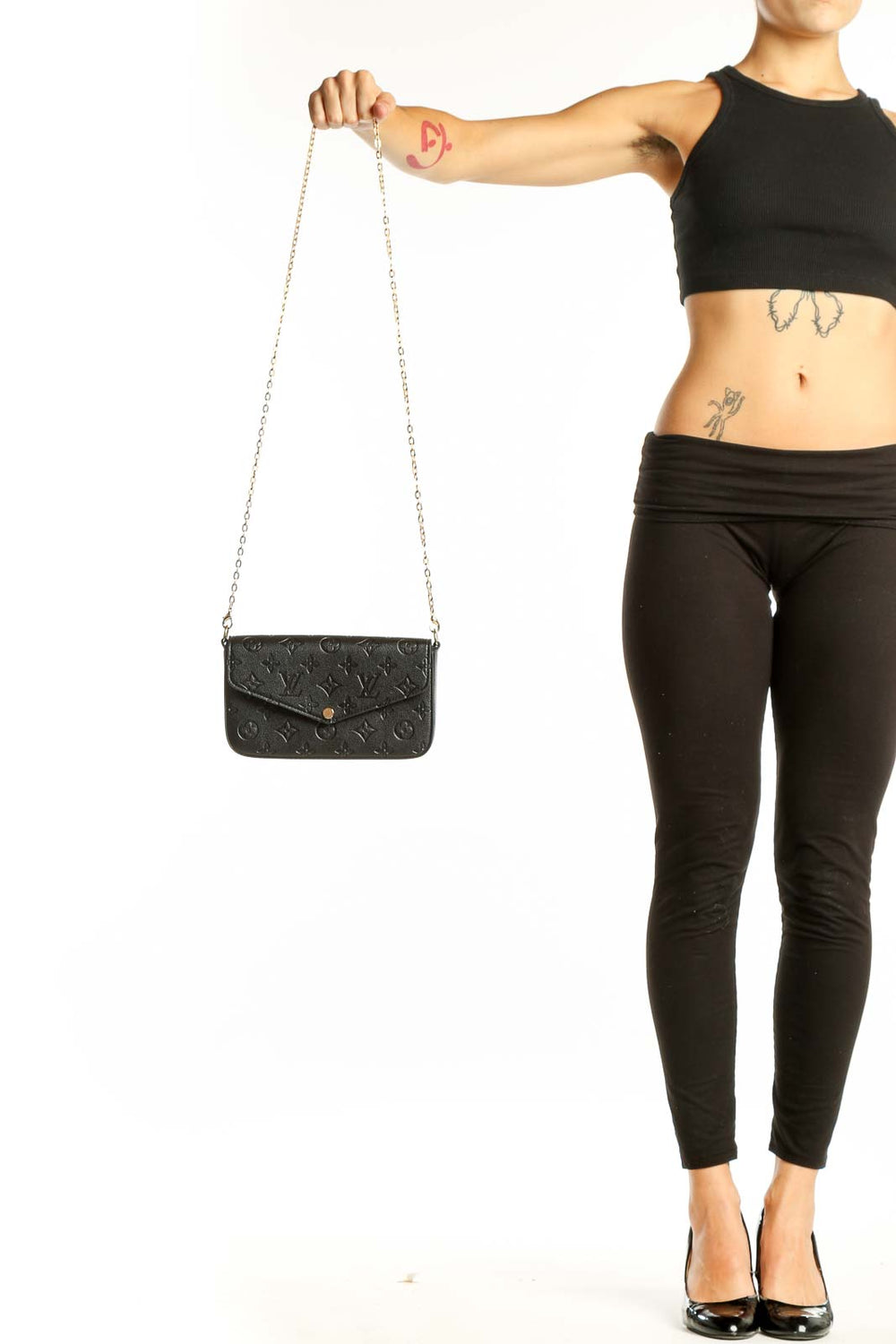 Elevate your style with this exquisite black crossbody bag from Louis Vuitton. Crafted with the brand's signature monogram embossed leather, this bag exudes luxury and sophistication. The compact size and sleek design make it perfect for both day and evening wear.