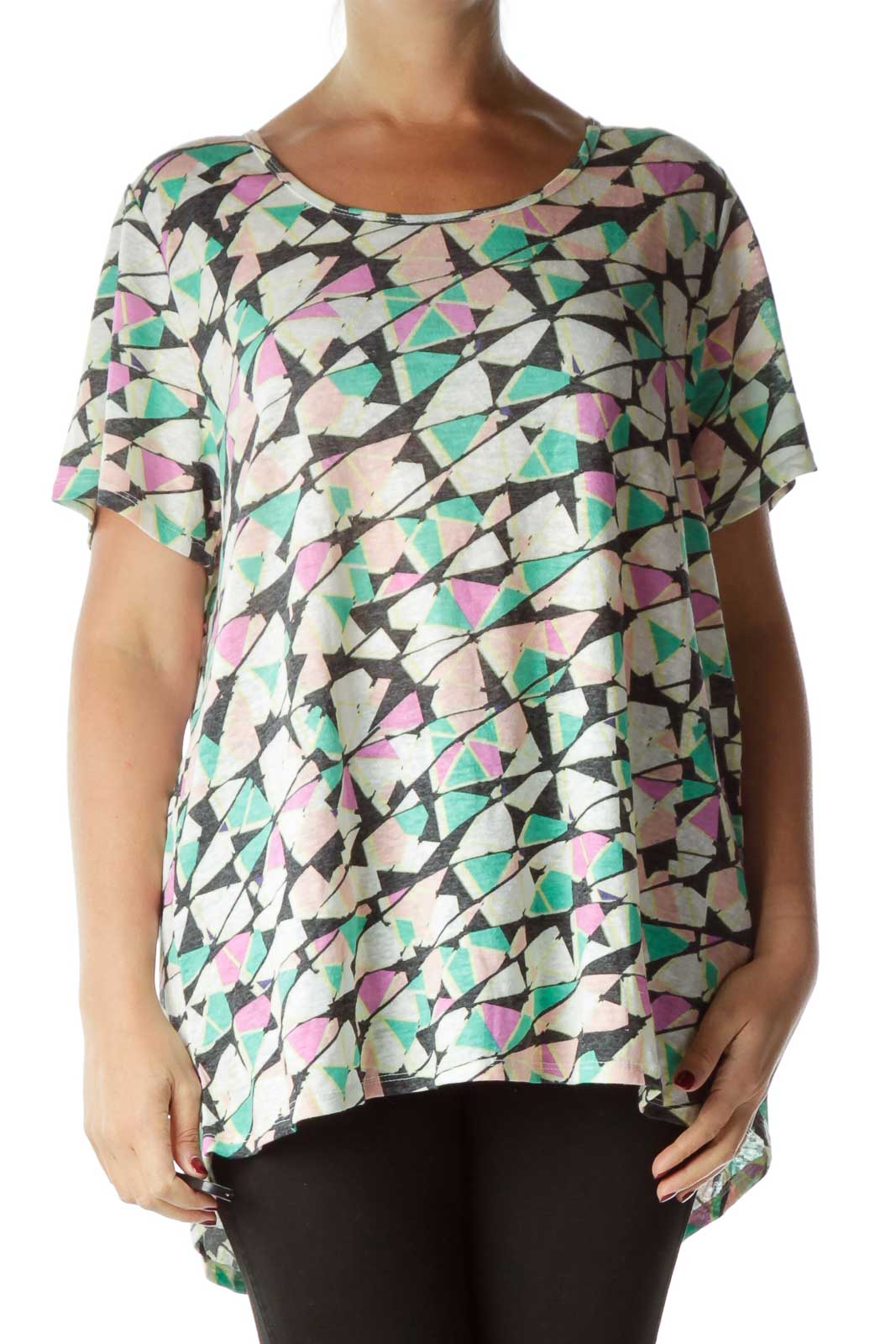 Multicolor Print Linen T-Shirt