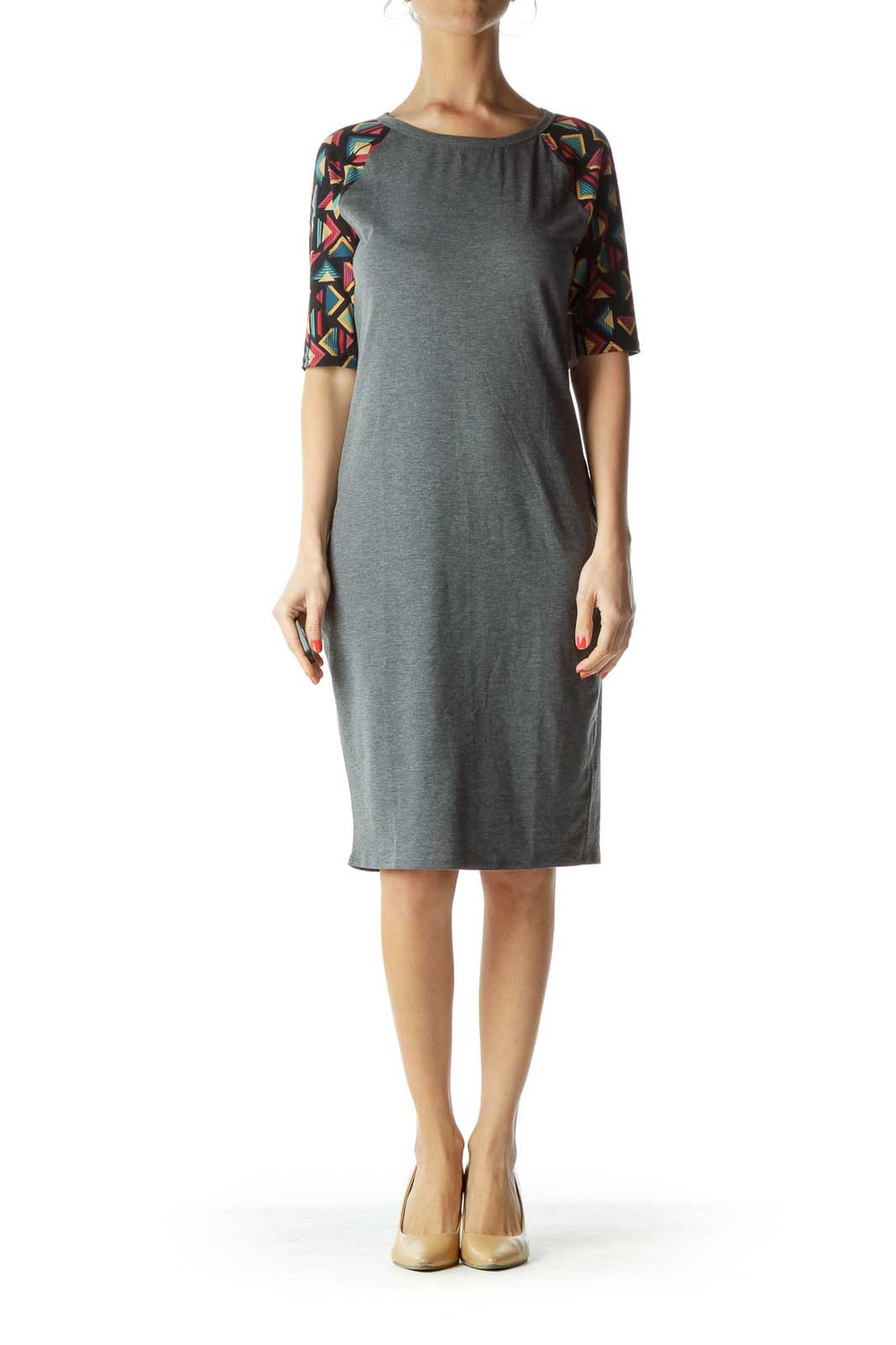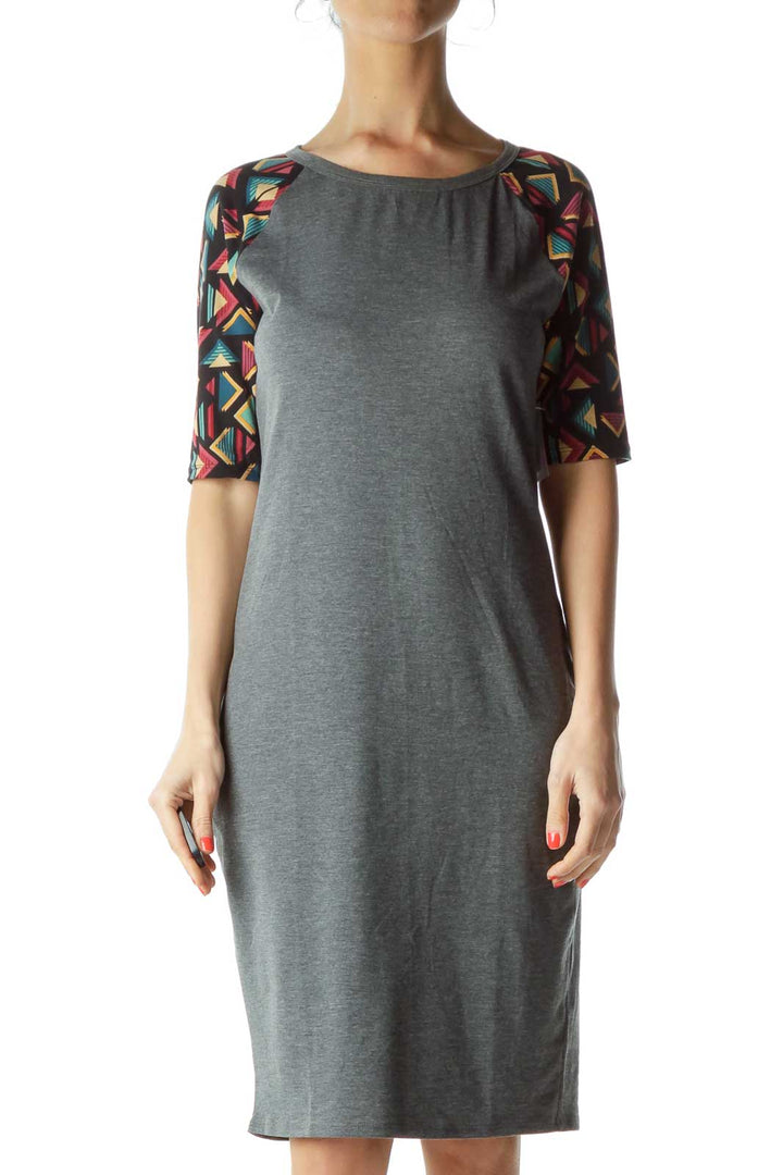 Gray Tribal Print Sleeve Jersey Dress
