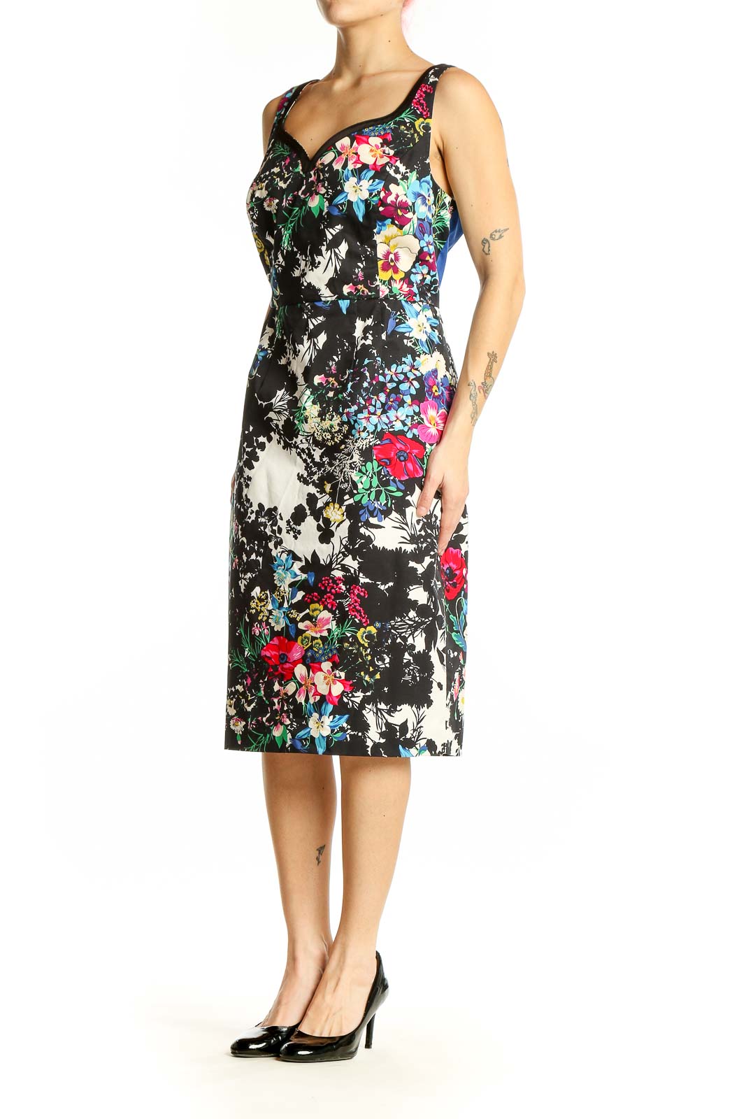 Make a statement with this stunning black floral print dress from Leifnotes. This eye-catching piece features a vibrant array of colorful flowers scattered across a dramatic black background, creating a bold and feminine look. The fitted silhouette accentuates your curves, while the sweetheart neckline adds a touch of romance. Crafted from a comfortable cotton-lycra blend, this dress offers both style and ease of movement. Perfect for various occasions, from garden parties to evening events, this versatile dress is sure to turn heads. In excellent condition, this XL-sized dress measures 36" in the bust, 32" at the waist, and 40" in length, ensuring a flattering fit for many body types. Elevate your wardrobe with this beautiful Leifnotes creation that seamlessly blends elegance with contemporary flair.
