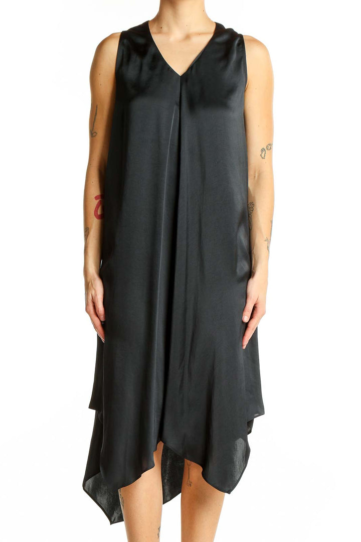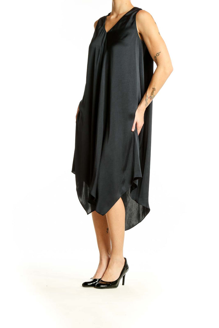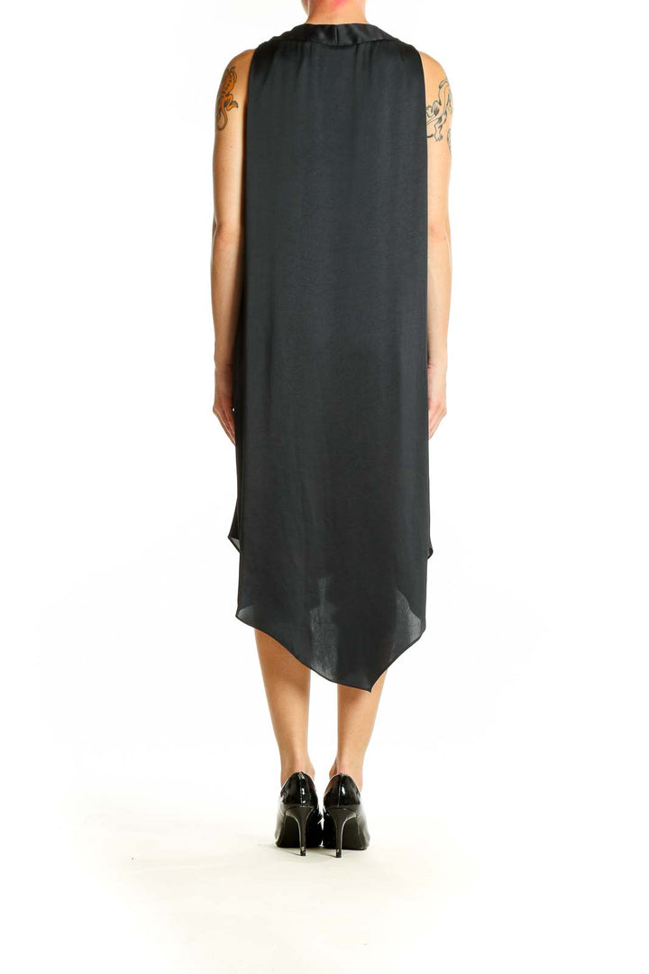 Black Sleeveless Asymmetric Midi Dress