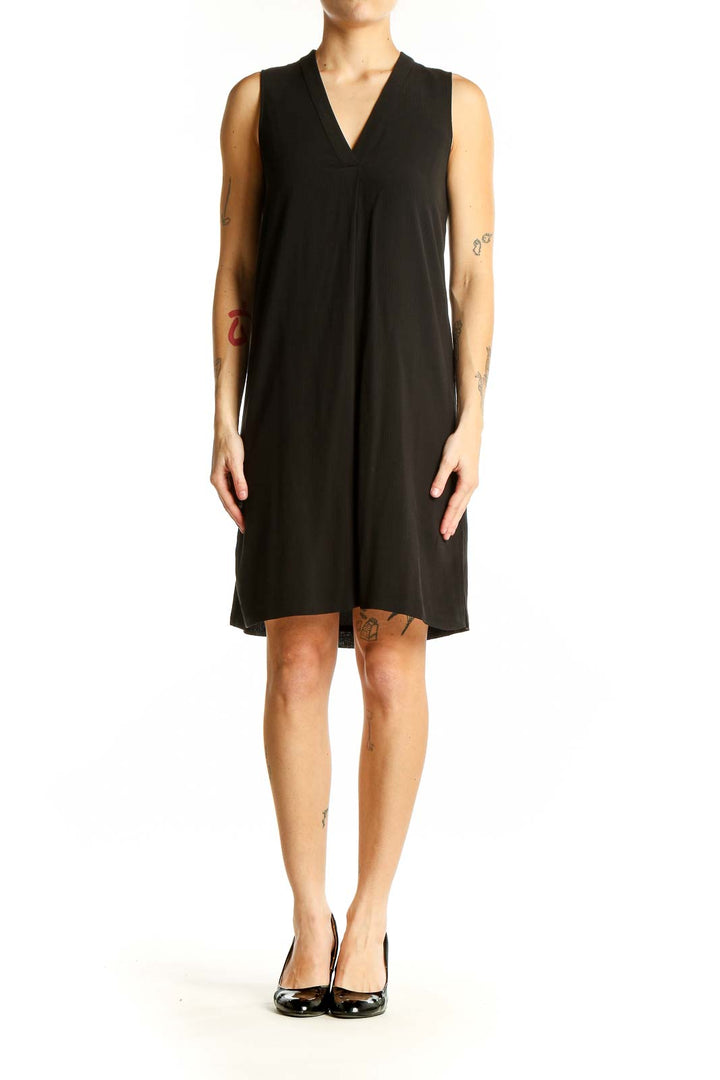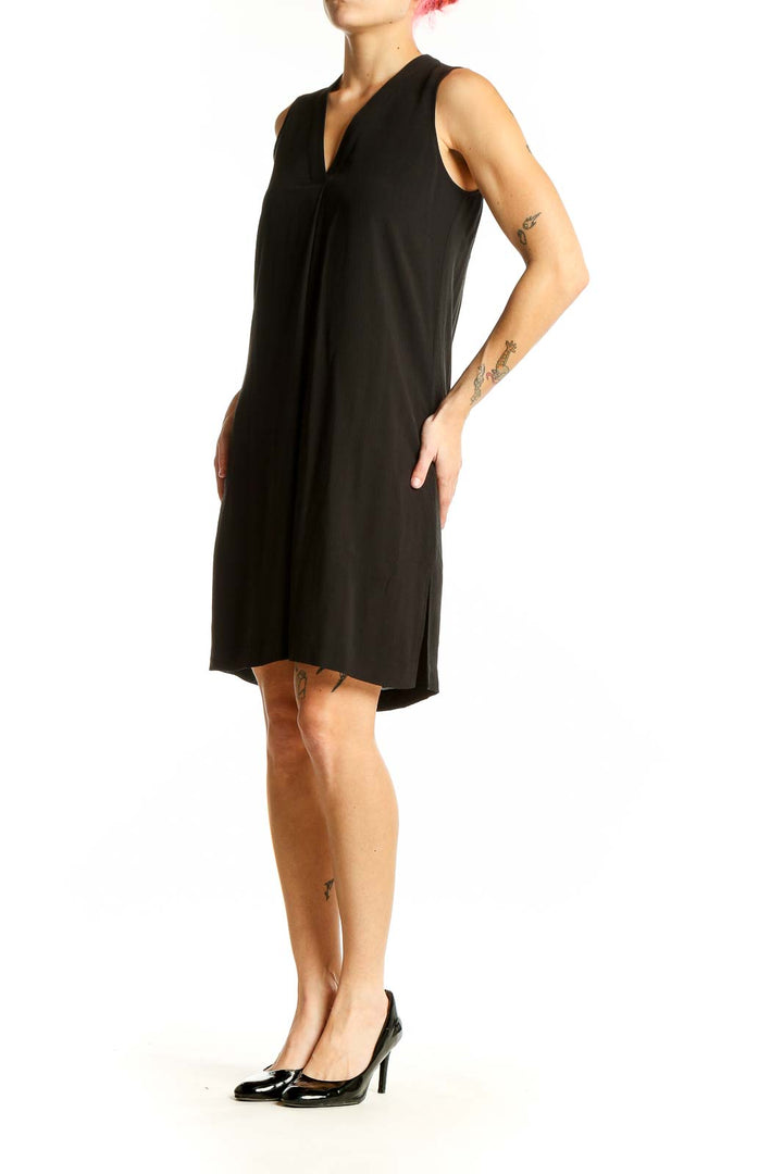 Elevate your wardrobe with this sophisticated black sleeveless shift dress by Theory. Crafted from a luxurious blend of polyester and silk, this dress offers both comfort and elegance. The V-neckline adds a touch of allure, while the sleek silhouette flatters your figure. Perfect for both office wear and evening events, this versatile piece features a knee-length cut and a relaxed fit that drapes beautifully. The excellent condition of this dress ensures you'll look polished and put-together for any occasion. With its timeless design and high-quality construction, this Theory dress is a must-have addition to your collection.