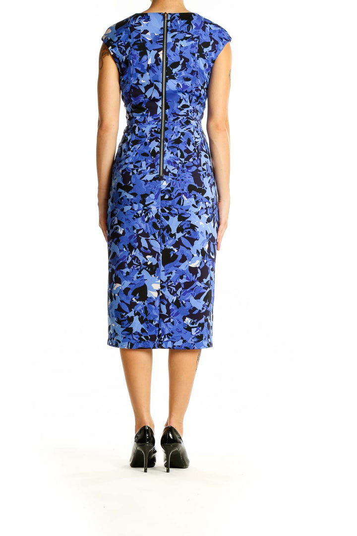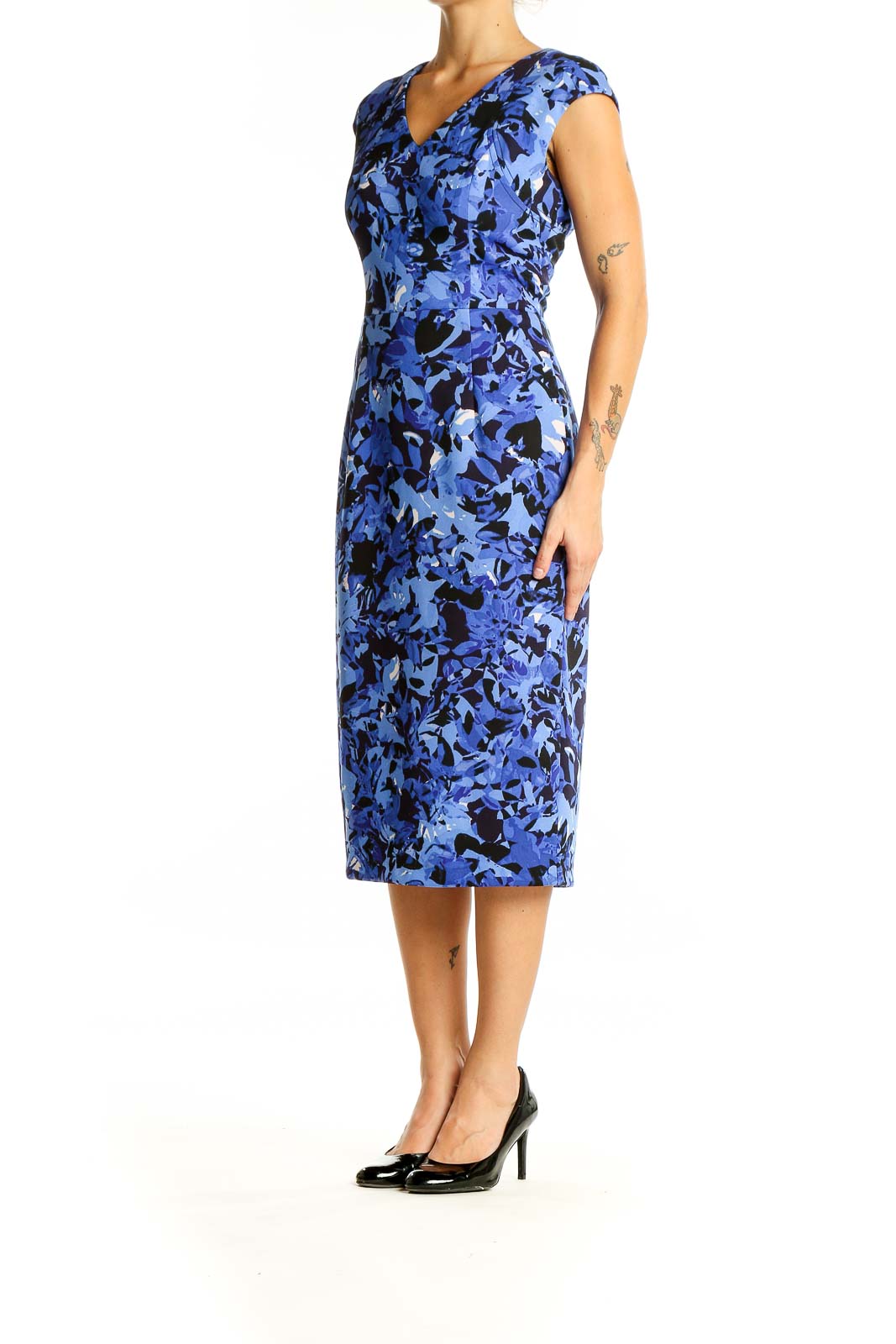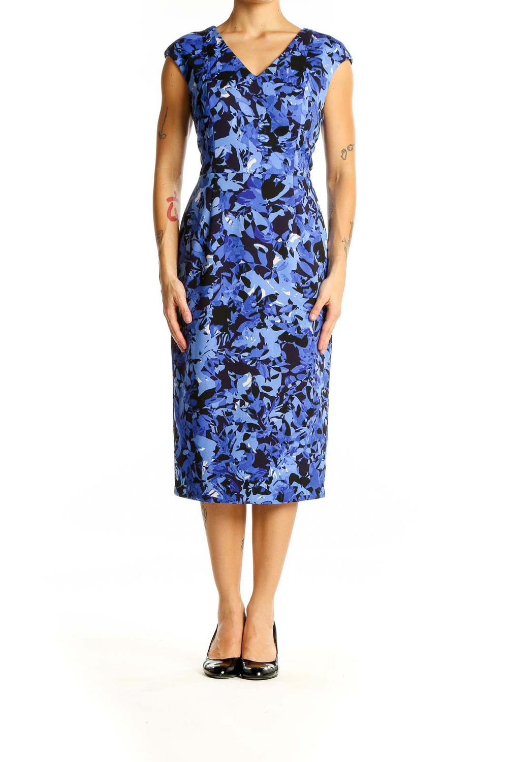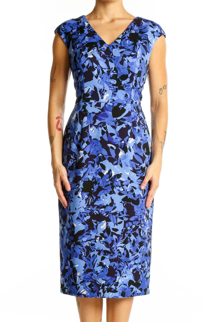 Make a statement in this stunning blue floral sheath dress from Maggy London. The vibrant blue and black floral print creates a captivating visual effect, perfect for any occasion. The dress features a flattering V-neckline and cap sleeves, offering a touch of elegance and sophistication.