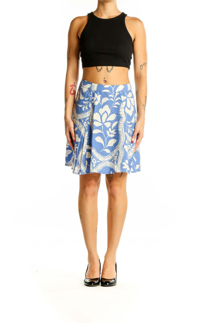 Step into summer with this charming blue floral A-line skirt from Marine Layer. The eye-catching design features a beautiful white floral pattern set against a soft blue background, creating a fresh and feminine look perfect for warm days. Made from a comfortable blend of cotton, polyester, rayon, and spandex, this skirt offers both style and ease of movement.