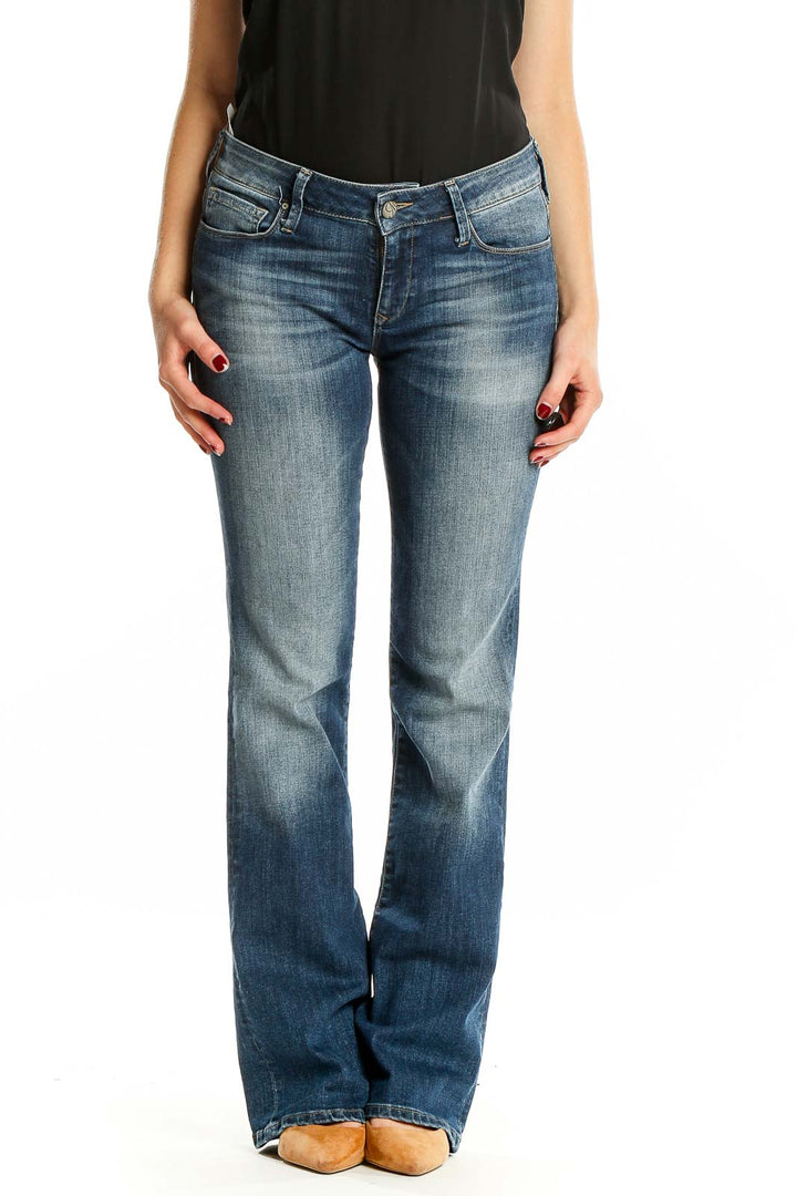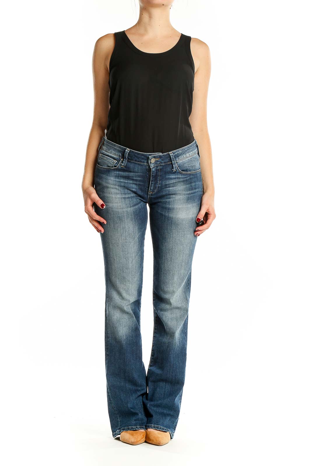 The bootcut silhouette flatters various body types, with a fitted thigh that gradually widens from the knee to the hem. This timeless design pairs effortlessly with both heels and flats, making it a versatile addition to your wardrobe. The jeans sit comfortably at the waist and feature traditional five-pocket styling.
