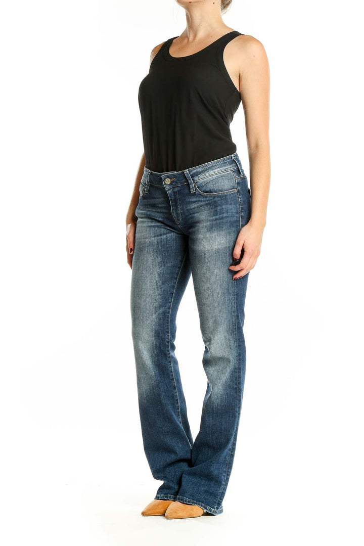 Step out in style with these classic blue bootcut jeans from Mavi Jeans. Crafted from a comfortable blend of cotton, elastane, and polyester, these jeans offer both durability and stretch for all-day wear. The medium wash denim features subtle fading and whiskering, giving them a lived-in look that's perfect for casual outings.