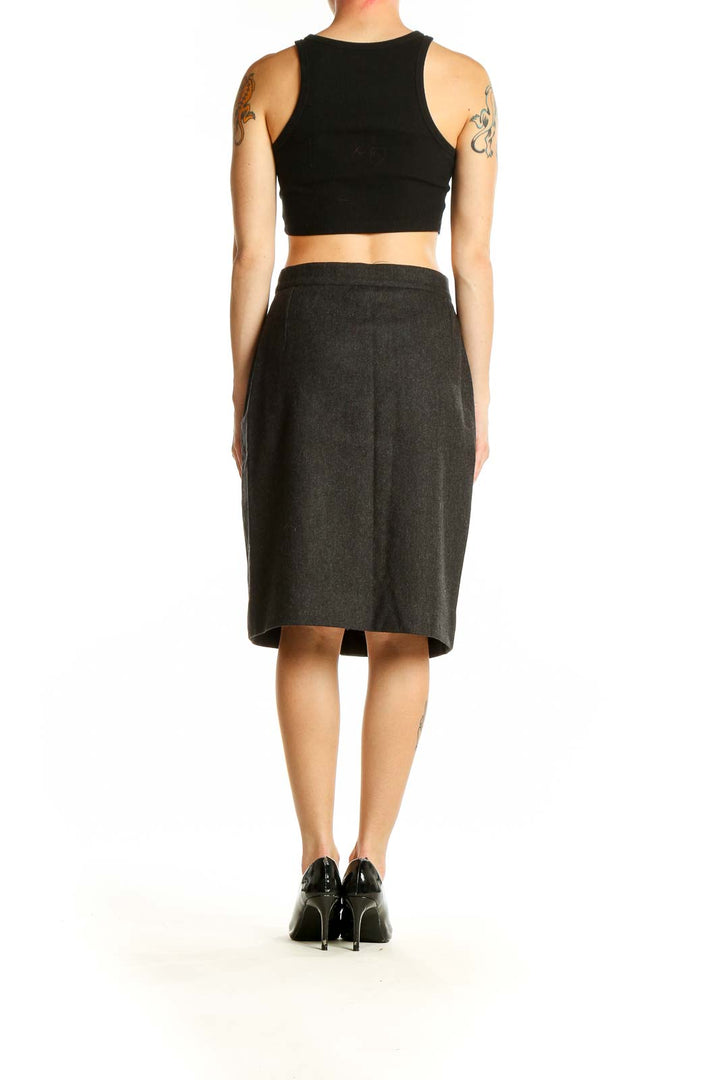 Designed with attention to detail, this skirt features a sleek waistband with a discreet closure, ensuring a smooth and polished appearance. The rich charcoal hue is versatile, easily pairing with a variety of tops and accessories. With its excellent condition, this Max Mara piece promises to be a long-lasting addition to your closet.