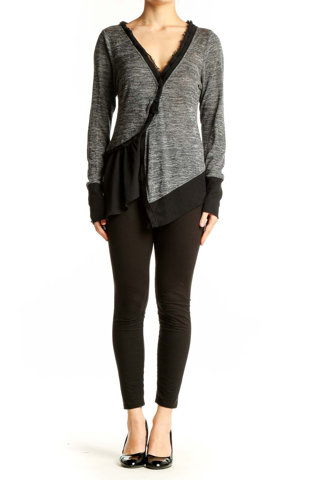 Elevate your casual wardrobe with this chic gray asymmetrical wrap cardigan from Meadow Rue. Crafted from a soft blend of modal and polyester, this versatile piece offers both comfort and style. The heathered gray fabric creates a sophisticated look, while the unique asymmetrical design adds a modern twist to the classic cardigan silhouette.