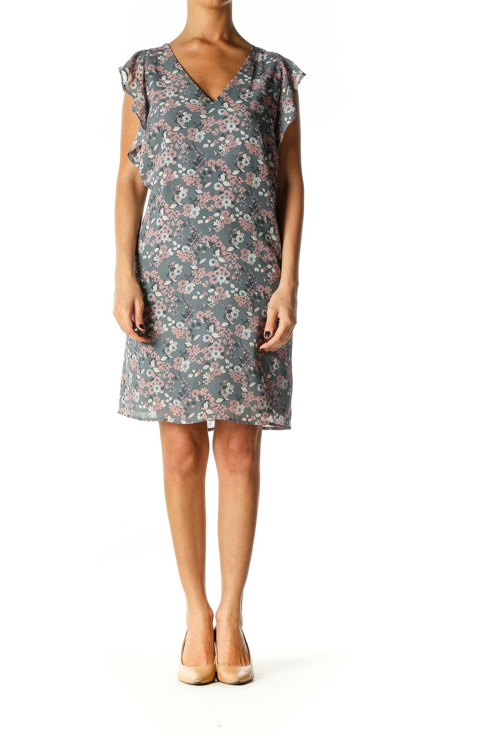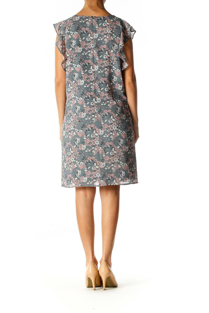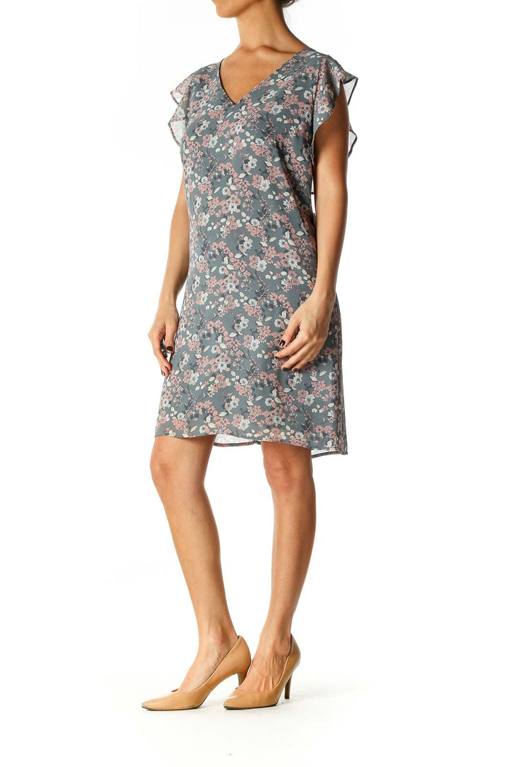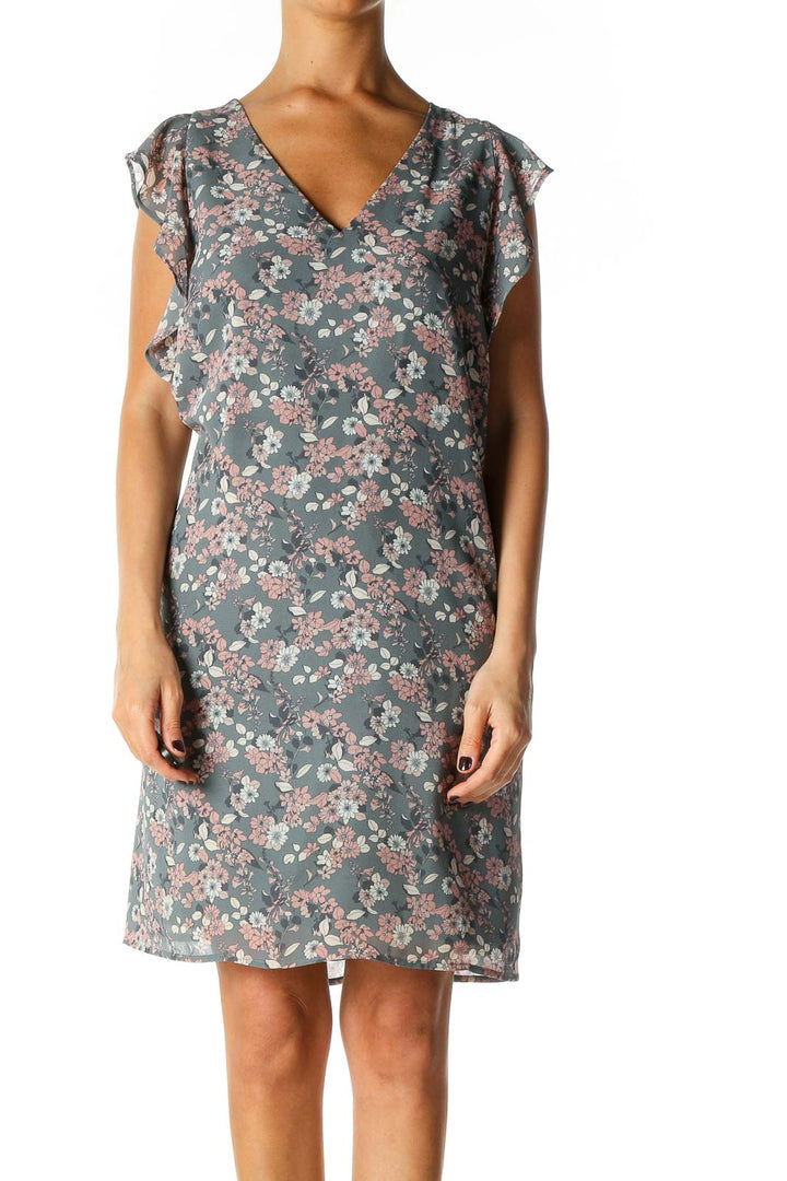Gray Floral Print Holiday Shift Dress