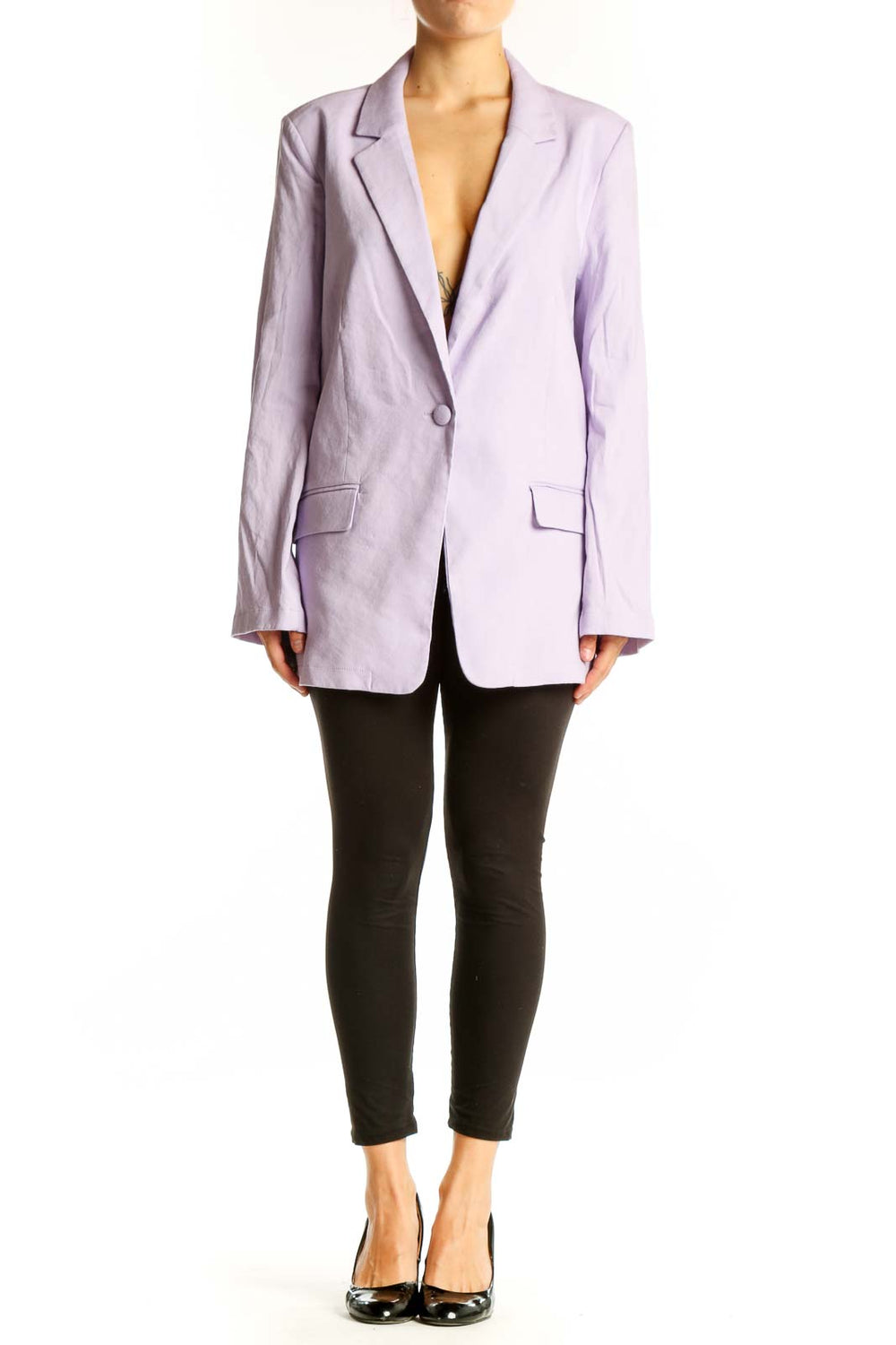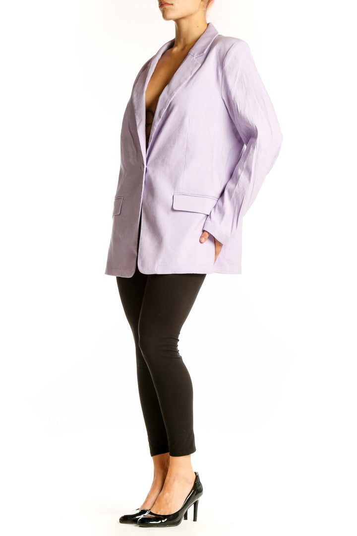 Make a statement with this stunning lavender linen-blend blazer from Halston. This oversized piece exudes effortless elegance with its relaxed fit and soft, breathable fabric. The single-button closure and notched lapels add a touch of sophistication, while the flap pockets provide both style and functionality. Crafted from a luxurious blend of linen and rayon, this jacket offers comfort and durability for all-day wear. The light lavender hue is perfect for adding a pop of color to your spring and summer wardrobe. In excellent condition, this Halston blazer is a versatile piece that can easily transition from office to evening events. With its generous measurements, it's designed to flatter a variety of body types. Elevate your look with this chic and contemporary blazer that embodies Halston's signature blend of timeless style and modern flair.