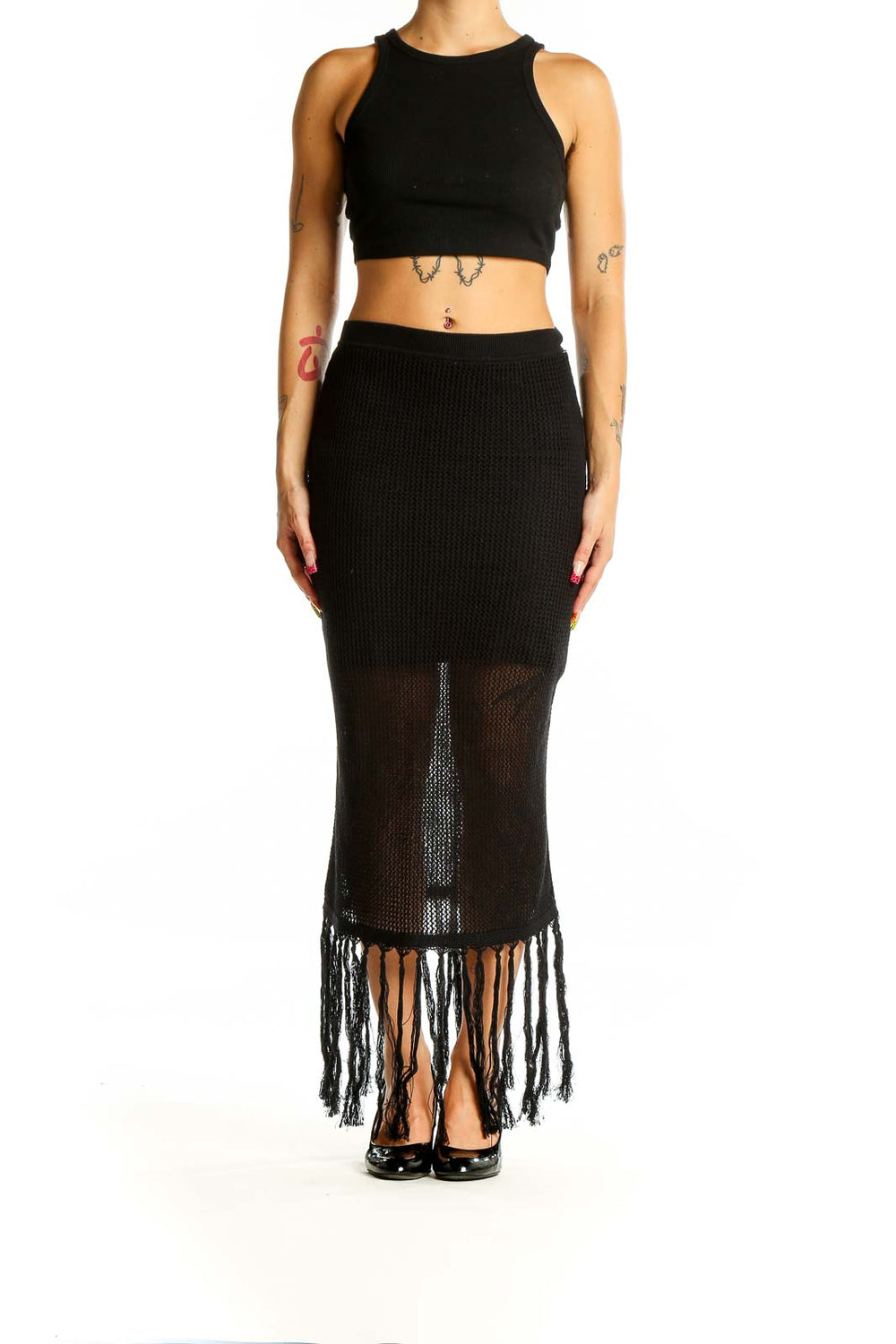 Black Fringe Midi Skirt