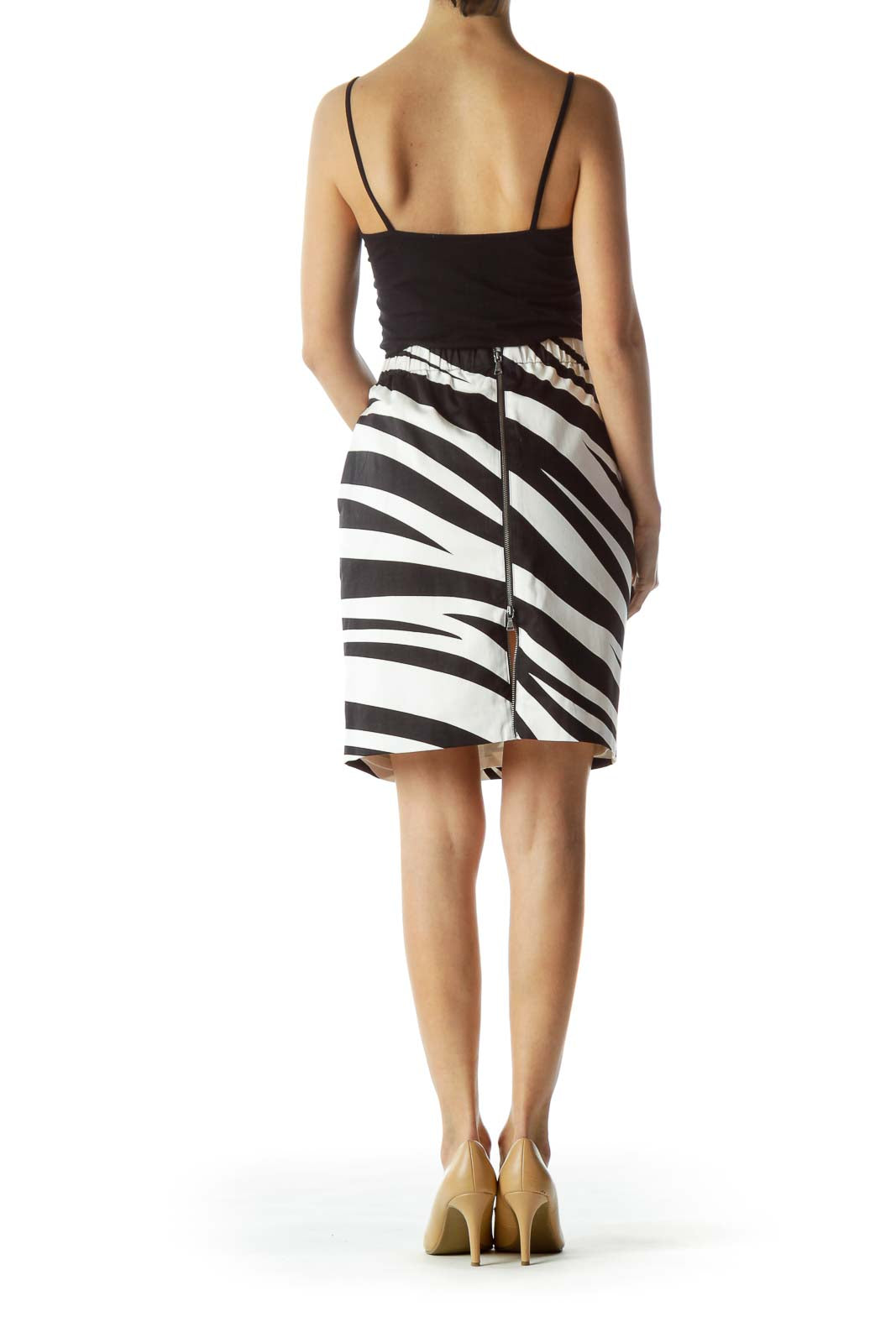 Make a bold statement with this striking black and white zebra print pencil skirt from Club Monaco. The eye-catching pattern adds a touch of wild sophistication to your wardrobe, perfect for both office and evening wear. Crafted with a sleek, figure-hugging silhouette, this skirt falls just below the knee for a flattering and versatile length. The high-waisted design accentuates your curves while providing a comfortable fit. Made from a smooth, stretchy fabric that ensures both comfort and style throughout the day. This Club Monaco skirt is brand new with tags, guaranteeing a pristine addition to your closet. Pair it with a simple black top and heels for a chic, head-turning ensemble that transitions effortlessly from day to night.