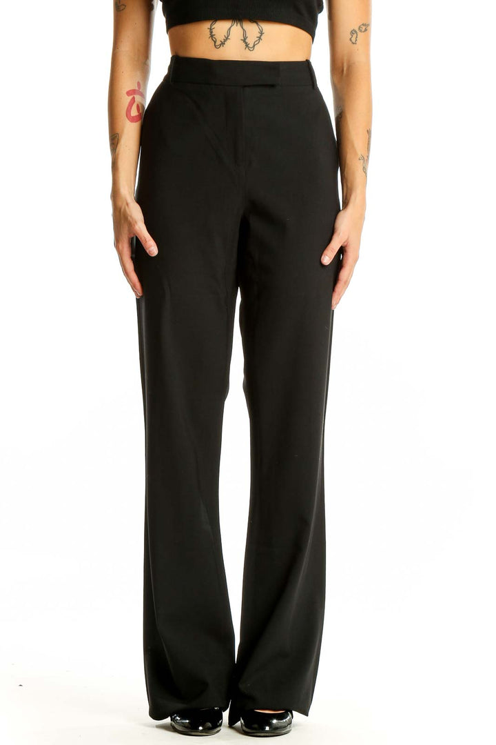 Step into sophistication with these sleek black wide-leg trousers from Diane von Furstenberg. Crafted from a luxurious blend of wool and elastane, these pants offer both comfort and style. The high-waisted design elongates your silhouette, while the wide-leg cut provides a fashionable and flattering fit. Perfect for both office wear and evening events, these versatile trousers feature a smooth, flat front and a length that pairs beautifully with heels. The wool blend fabric ensures warmth and durability, while the touch of elastane adds just the right amount of stretch for all-day comfort. In good condition, these pants are a timeless addition to any sophisticated wardrobe.