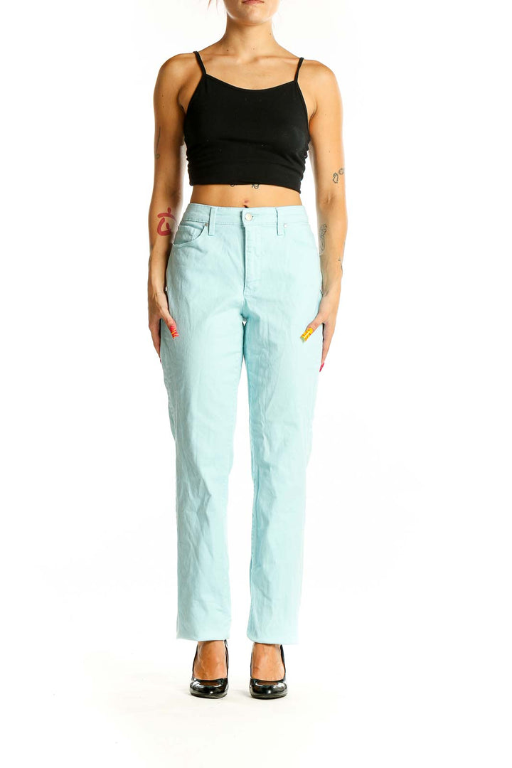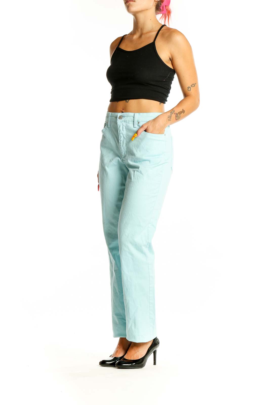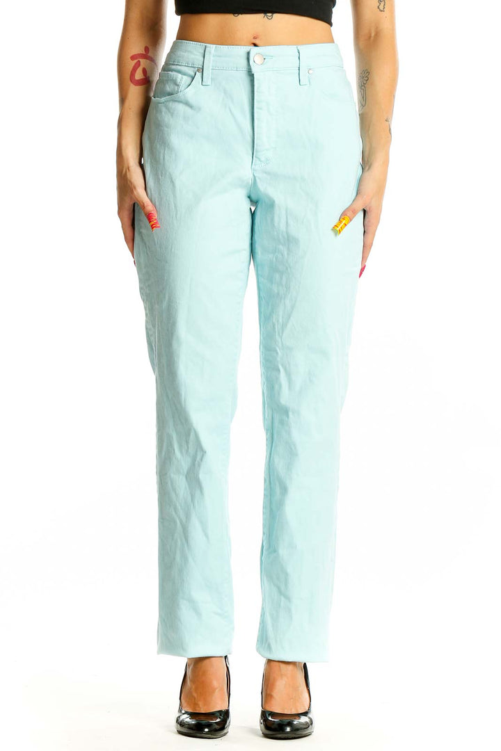 Step into comfort and style with these mint green straight leg pants from Charter Club. Crafted from a soft and stretchy blend of cotton and spandex, these pants offer both comfort and durability for all-day wear. The classic straight leg silhouette provides a timeless look that can be dressed up or down for various occasions. With a comfortable waist measurement of 30 inches and a 30-inch inseam, these pants offer a flattering fit for a size Large. The light, refreshing mint green color is perfect for adding a pop of color to your spring and summer wardrobe. In excellent condition, these pants are a versatile addition to any closet, easily pairing with a variety of tops and accessories for a polished, put-together look.