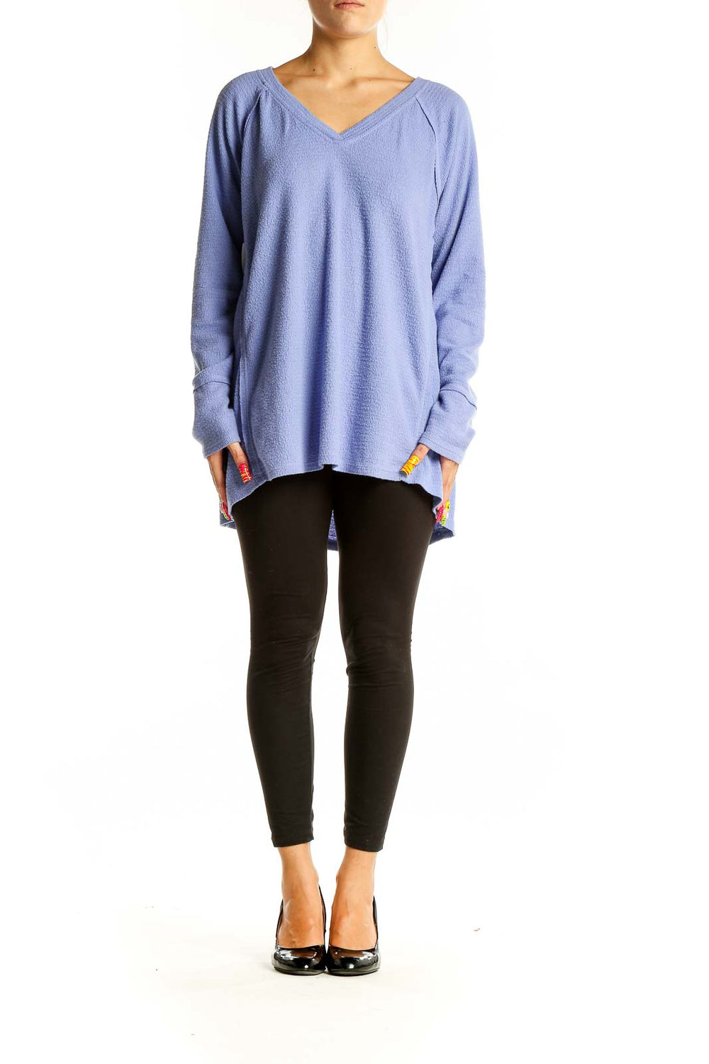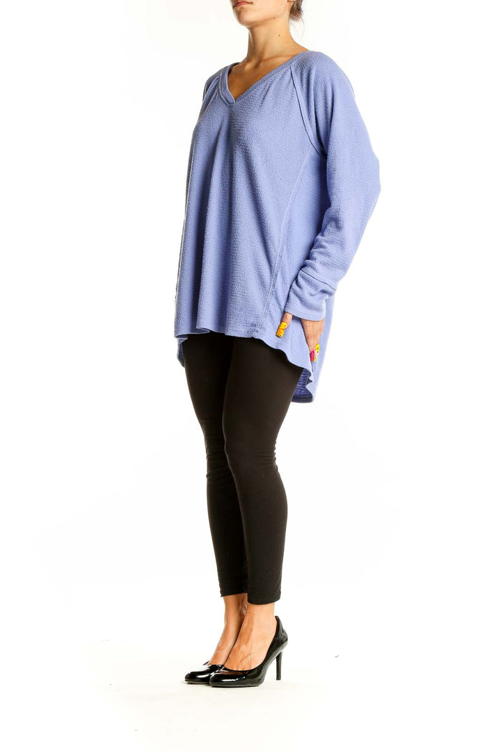 The sweater's long sleeves and extended length provide ample coverage, while the V-neckline adds a touch of femininity to the casual design. The high-low hemline offers versatile styling options, whether paired with leggings for a laid-back look or dressed up with jeans for a chic ensemble.