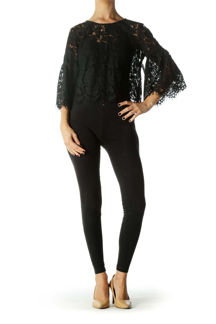 Black See-Through Keyhole Back Cropped Top