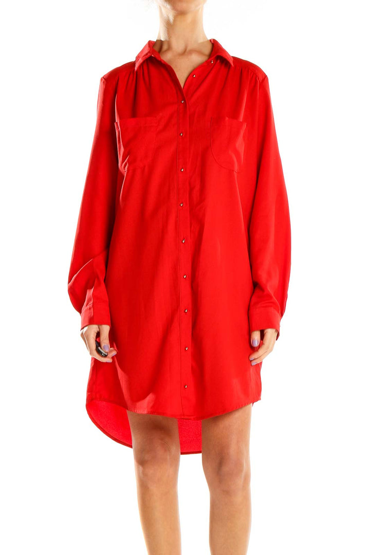 Make a bold statement with this vibrant red shirt dress from Mustard Seed. This versatile piece features a classic button-down front, long sleeves, and a relaxed fit that drapes beautifully. The dress is crafted from a lightweight, flowing fabric that offers both comfort and style. Its collared neckline and chest pockets add a touch of sophistication, while the high-low hemline provides a modern twist. Perfect for various occasions, this dress can be easily dressed up or down. The excellent condition ensures you'll look polished and put-together. With its generous measurements (Bust 38", Length 35", Waist 34"), this medium-sized dress offers a comfortable fit for a range of body types. Whether paired with heels for a night out or flats for a casual day look, this Mustard Seed shirt dress is sure to become a favorite in your wardrobe.