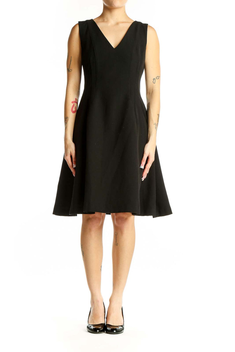 Elevate your evening attire with this stunning black cocktail dress from Banana Republic. Crafted from a luxurious blend of polyester, rayon, spandex, and viscose, this dress offers both comfort and style. The classic A-line silhouette features a flattering V-neckline and falls gracefully to the knee, making it perfect for various formal occasions.