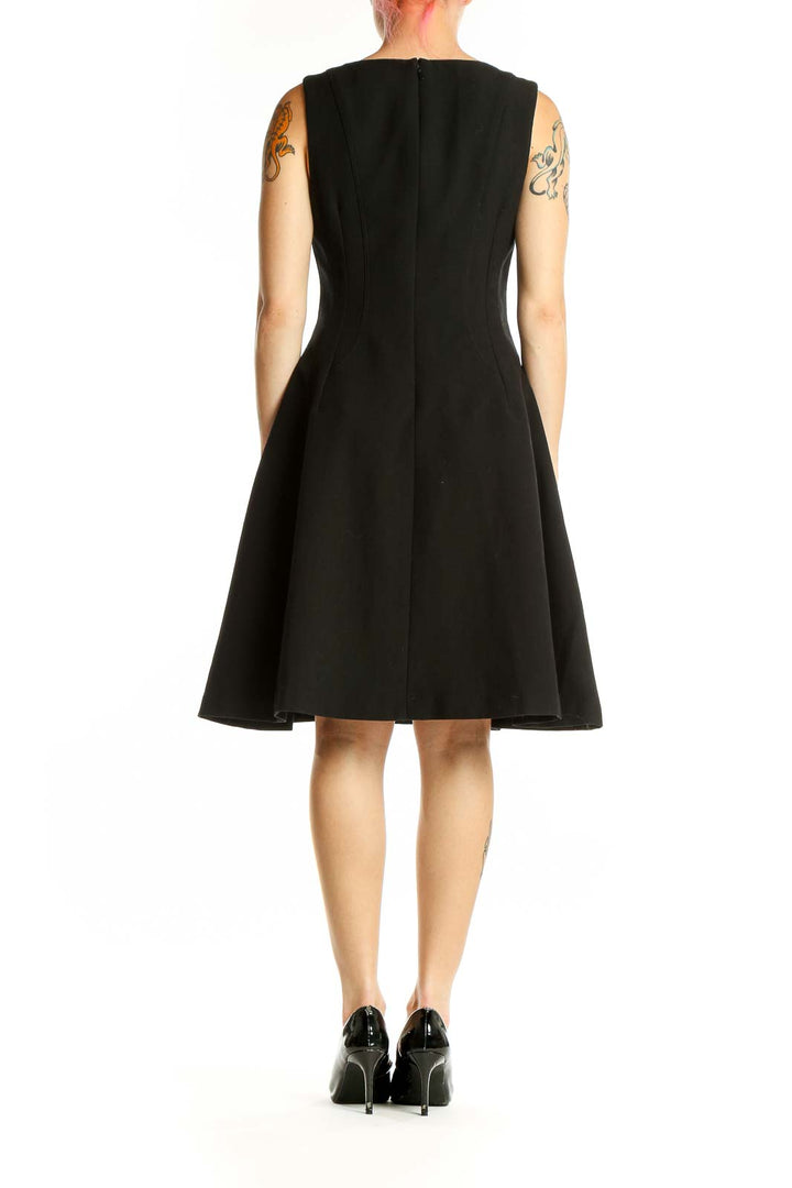 The sleeveless design showcases your arms while the fitted bodice accentuates your waist, creating an elegant and feminine silhouette. The dress flares gently from the waist, providing ease of movement and a flattering fit for all body types. Side pockets add a practical touch to this sophisticated piece.