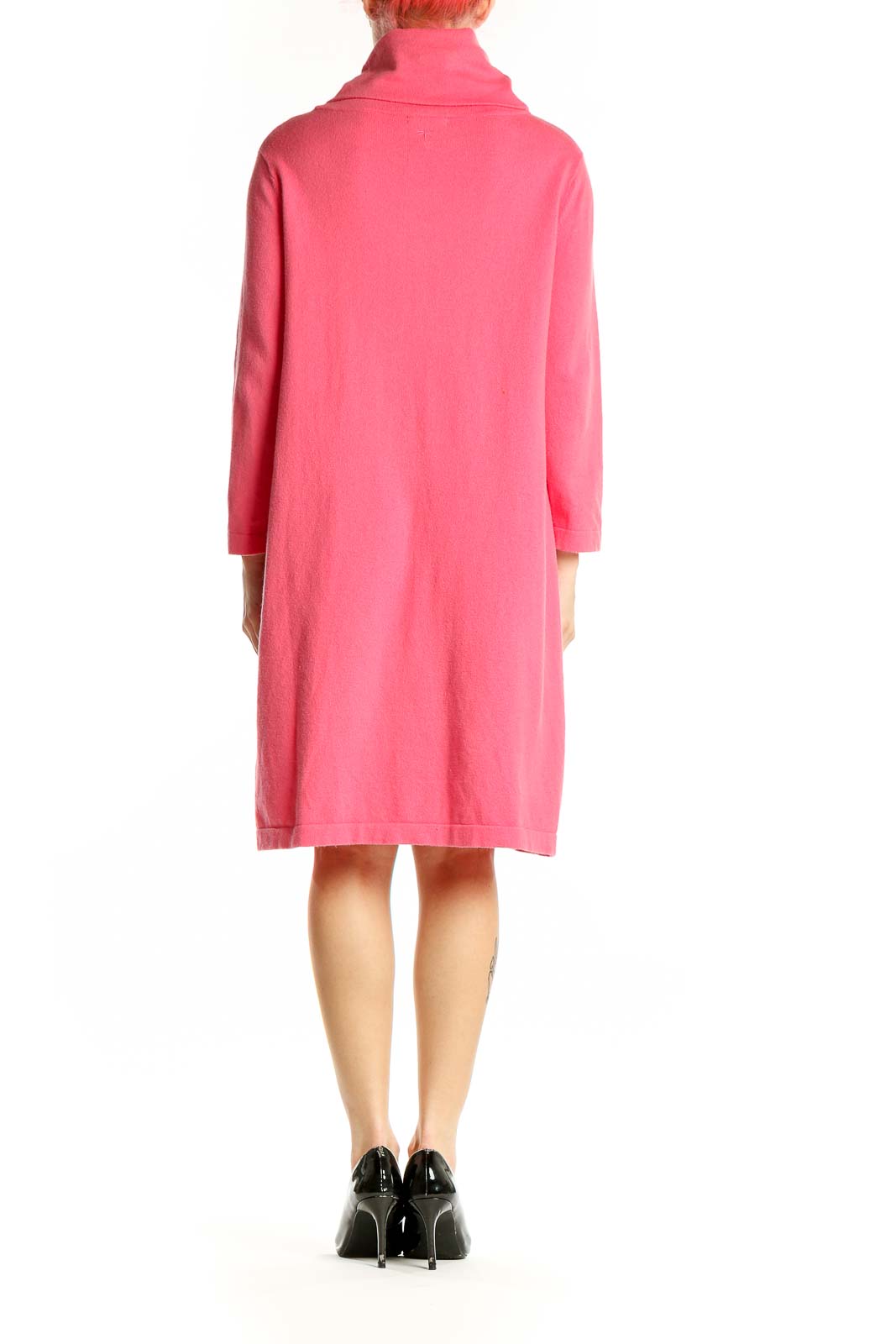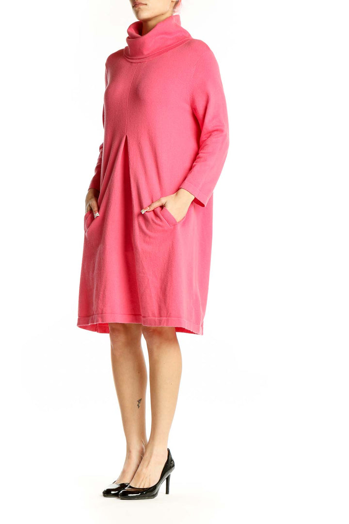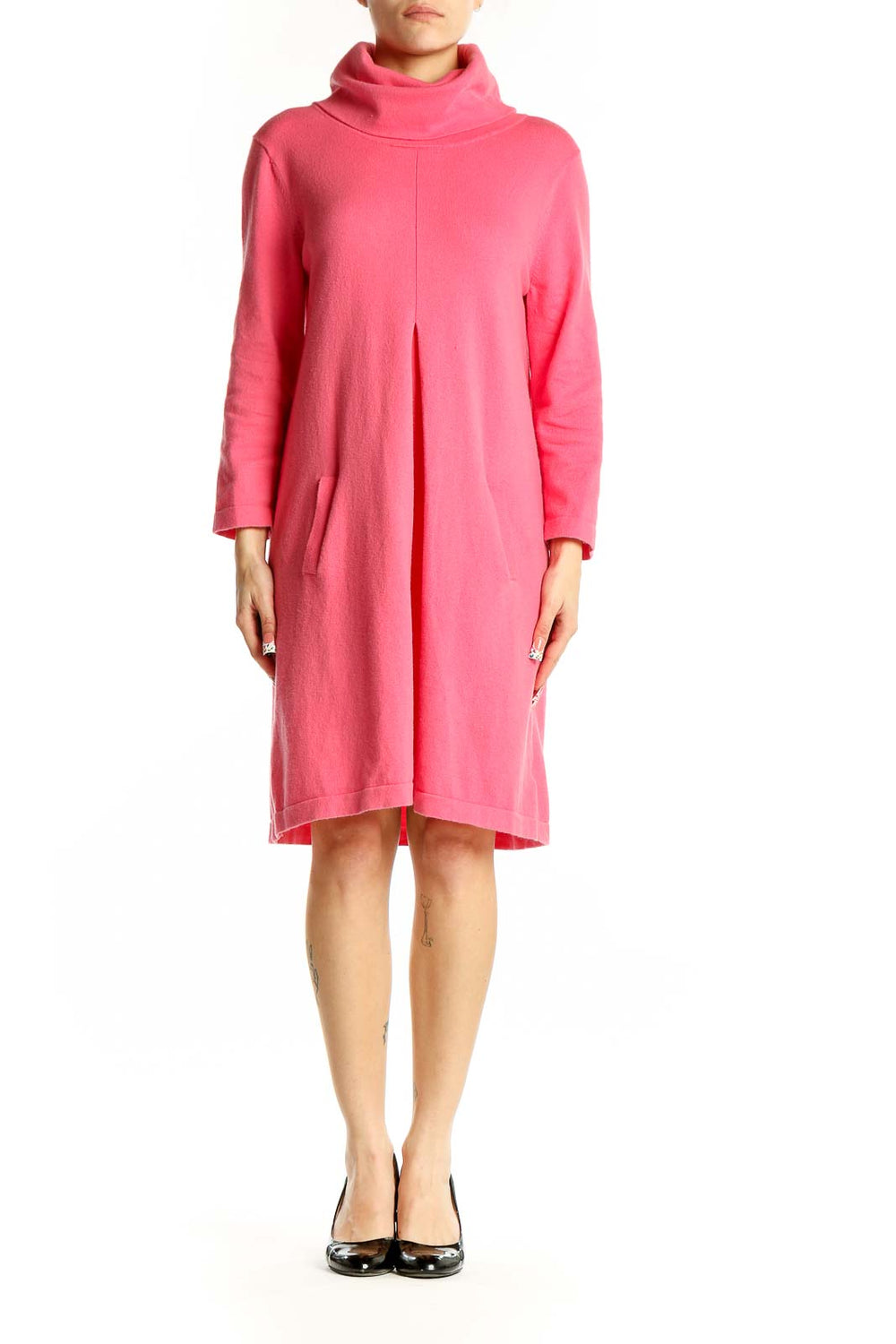 Embrace comfort and style with this stunning pink turtleneck sweater dress from Tyler Boe. Crafted from a luxurious blend of cashmere, cotton, and nylon, this knee-length dress offers both warmth and softness. The relaxed fit and pleated front design create a flattering silhouette suitable for various body types. Features include a cozy turtleneck, long sleeves, and convenient side pockets. The vibrant pink hue adds a cheerful pop of color to your wardrobe, perfect for brightening up dreary days. Ideal for casual outings or dressed up for more formal occasions, this versatile piece is a must-have for the fashion-forward woman.