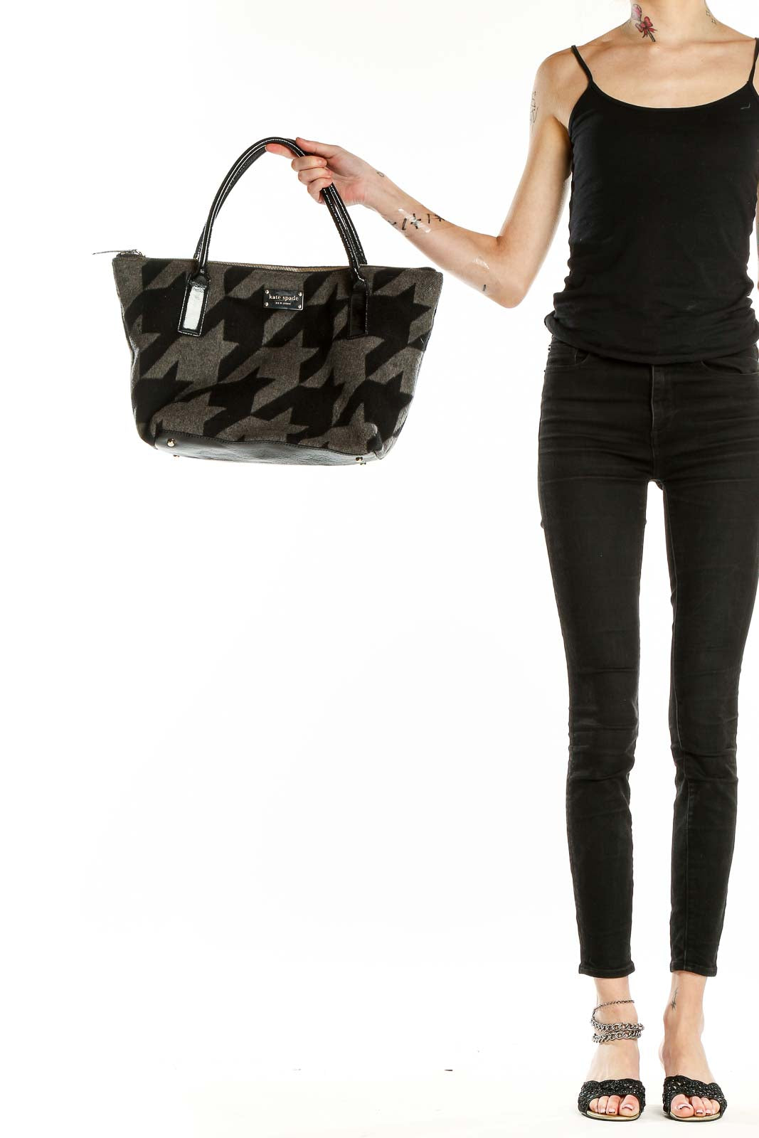 Elevate your everyday style with this chic Kate Spade tote bag featuring a classic black and gray houndstooth pattern. The wool-blend exterior offers a luxurious texture, while the sleek patent leather trim and handles add a touch of sophistication. This spacious tote is perfect for carrying all your essentials, with dimensions of approximately 19" in width, 11" in height, and 5" in depth. The bag's condition is good, making it a fantastic find for fashion-conscious shoppers. The zipper closure ensures your belongings stay secure, and the iconic Kate Spade logo plate adds a subtle designer touch. Whether you're heading to the office or out for a weekend brunch, this versatile tote will complement any outfit with its timeless design and practical functionality.