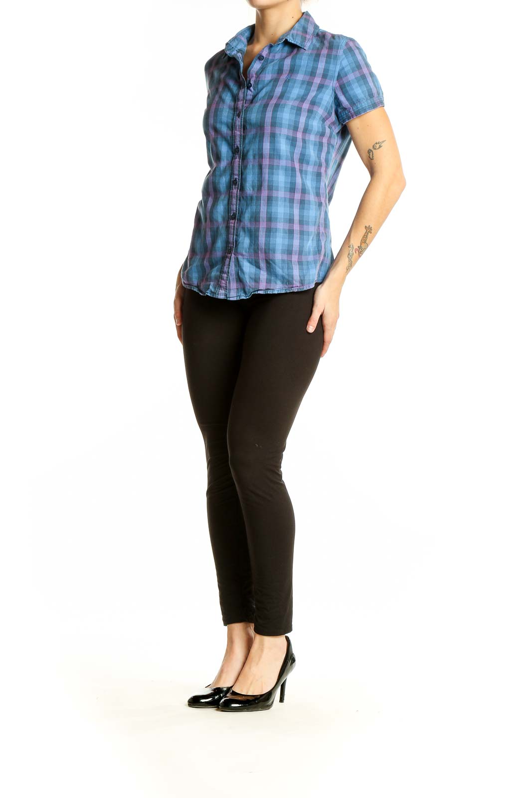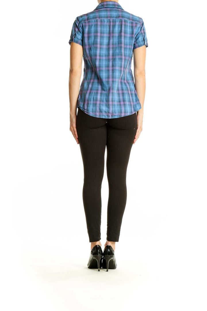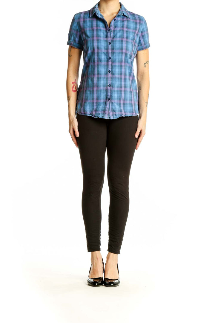 Elevate your casual wardrobe with this charming blue and purple plaid short-sleeve button-up shirt from Tommy Hilfiger. The vibrant color combination creates a eye-catching look that's perfect for both relaxed weekends and casual Fridays at the office. Crafted with care, this shirt features a classic collar, button-front closure, and a convenient chest pocket for a touch of functionality.