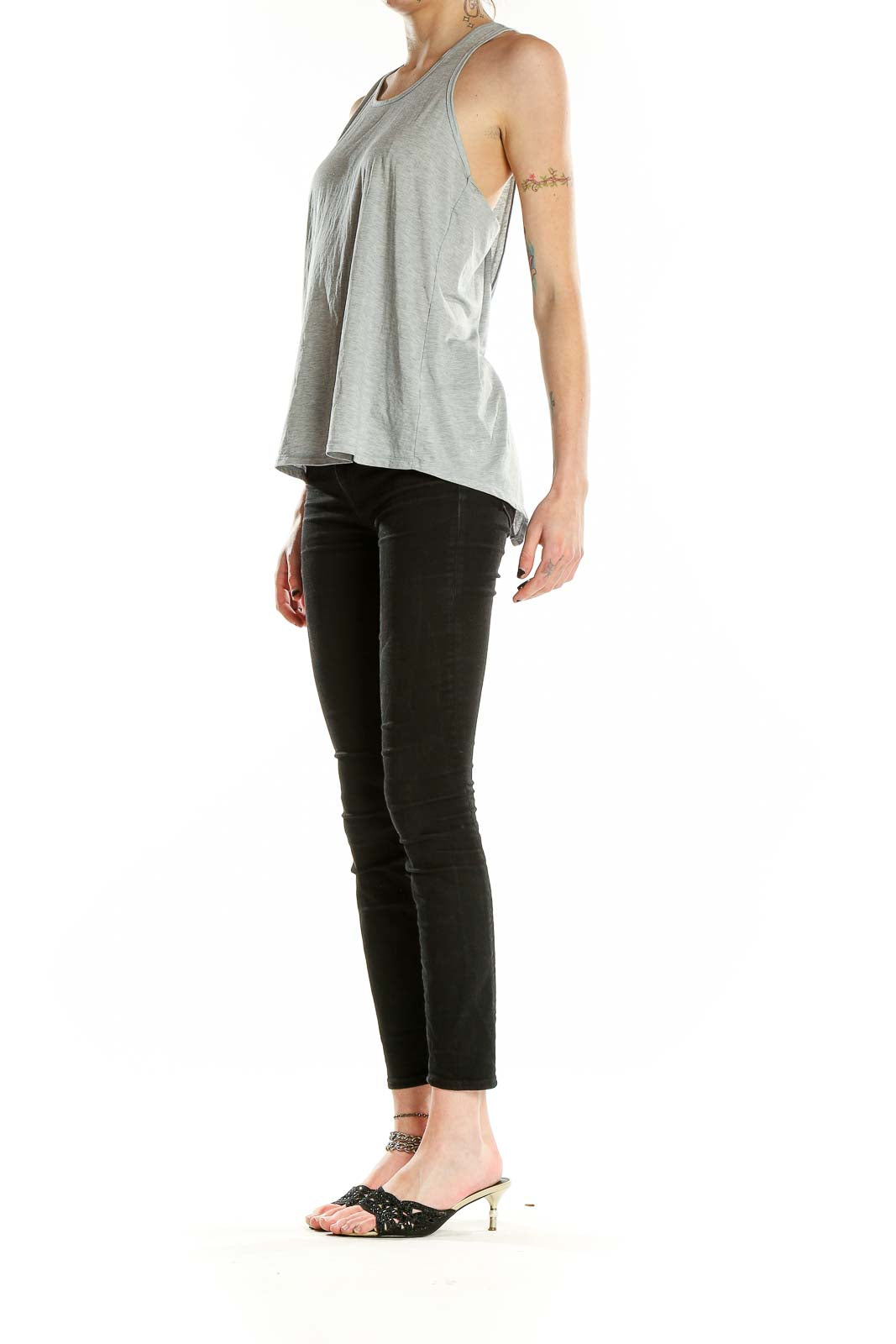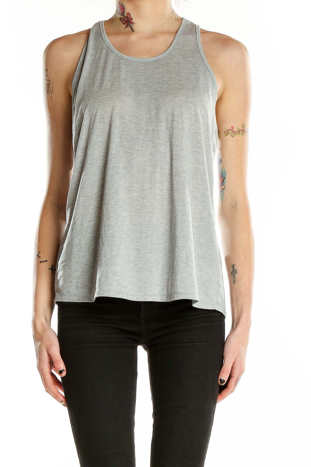 Elevate your workout wardrobe with this sleek gray racerback tank top from Athleta. Crafted from a luxurious blend of Lyocell, Polyester, and Spandex, this top offers both comfort and performance. The racerback design provides unrestricted movement, making it perfect for yoga, running, or any high-intensity workout.