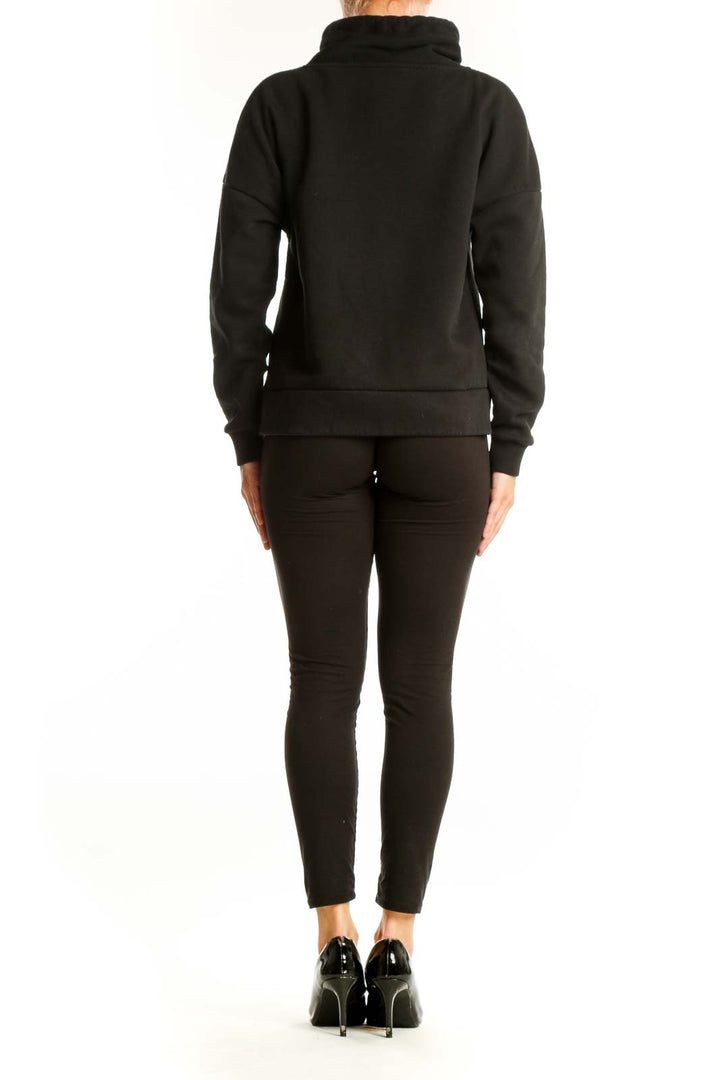 Elevate your casual wardrobe with this sleek black cowl neck sweatshirt from Banana Republic. Crafted from a comfortable blend of cotton and elastane, this top offers both style and flexibility for all-day wear. The distinctive cowl neck adds a touch of sophistication to the classic sweatshirt silhouette, making it perfect for both lounging at home and casual outings.