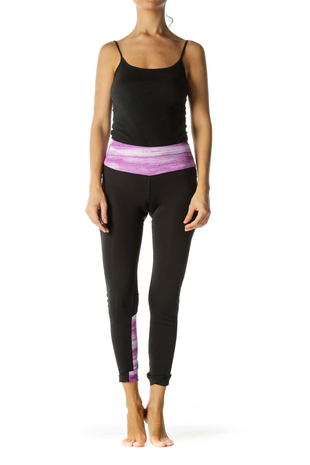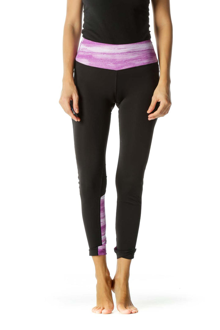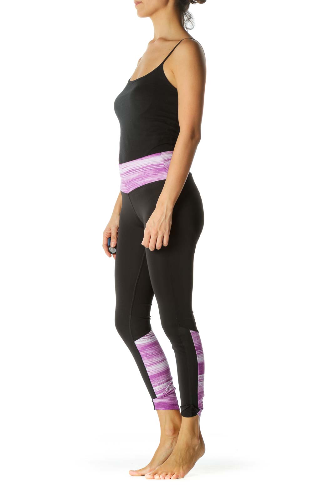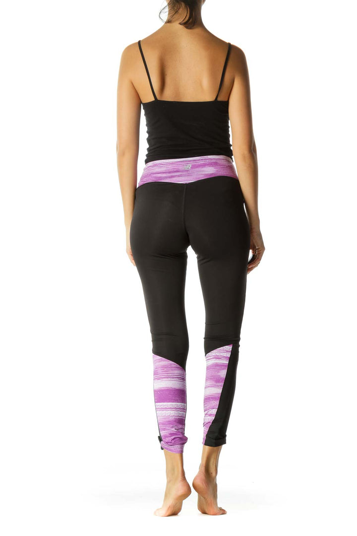 Black White Purple Abstract Print Lower Leg Mesh Detail Active Leggings