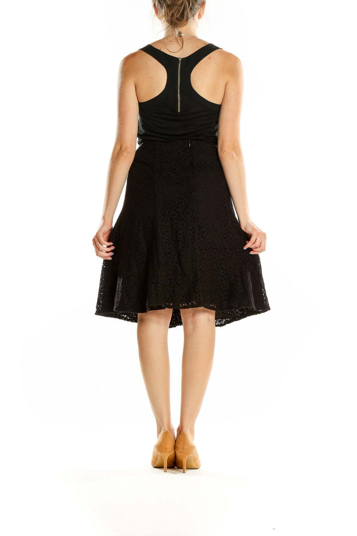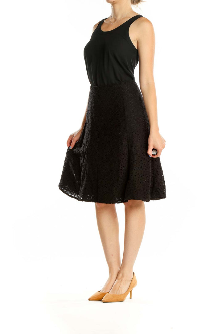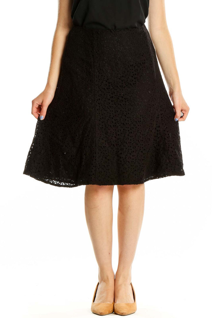 Elevate your wardrobe with this stunning black lace skirt from Nicole by Nicole Miller. Crafted from a luxurious blend of cotton and polyester, this A-line skirt features an intricate lace overlay that adds a touch of elegance to any outfit. The knee-length design is both flattering and versatile, perfect for both office wear and evening events.