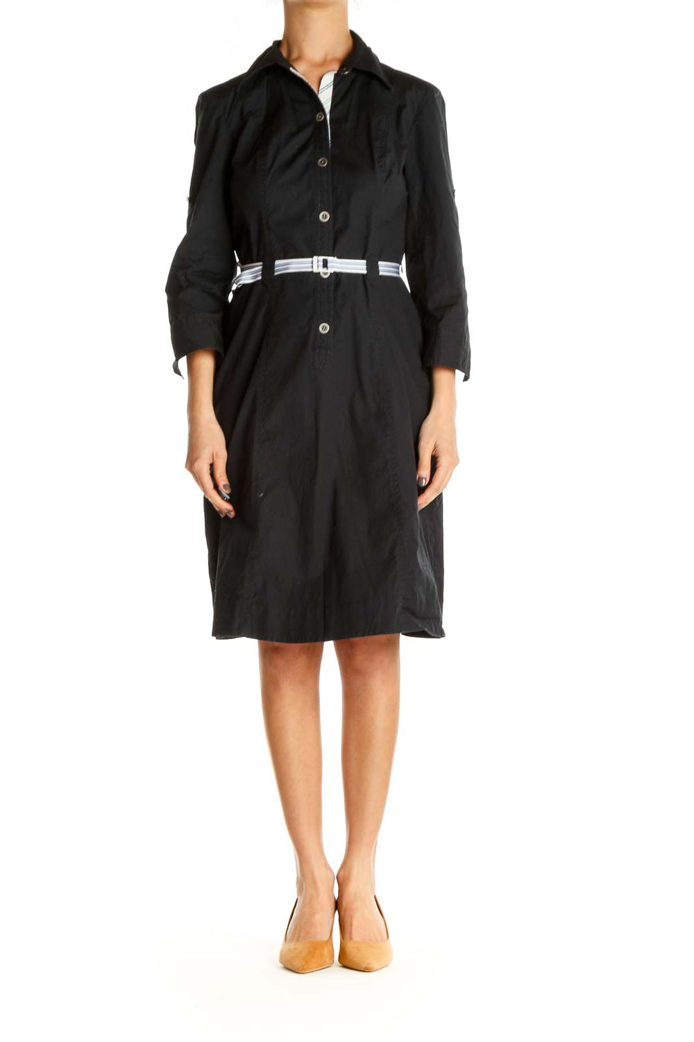 Black Solid Work Shift Dress