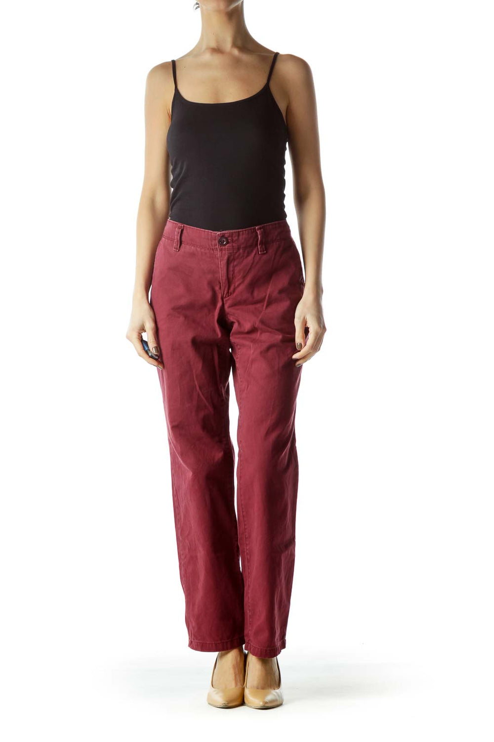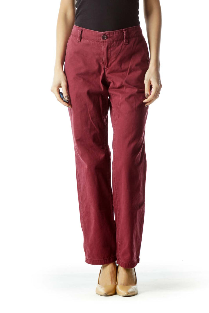Step out in style with these classic burgundy chino pants from Eddie Bauer. Perfect for casual outings or semi-formal occasions, these straight-leg trousers offer both comfort and versatility. The rich burgundy hue adds a sophisticated touch to your wardrobe, easily pairing with a variety of tops and shoes.