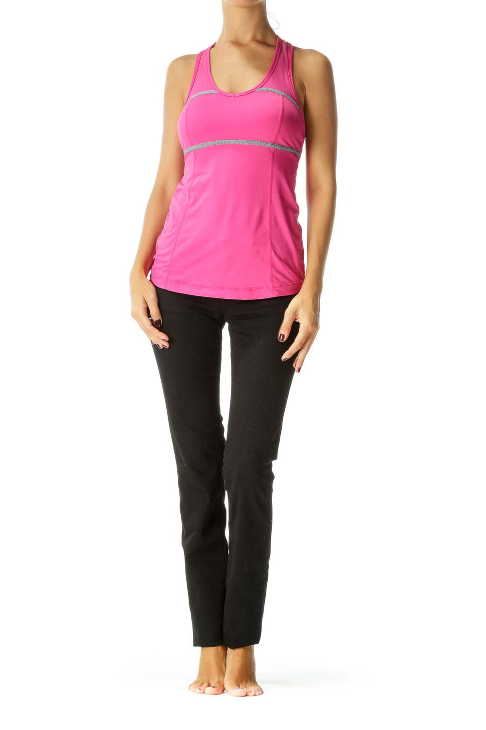 Pink Gray Mesh Racerback Sports Top with Built-In Bra