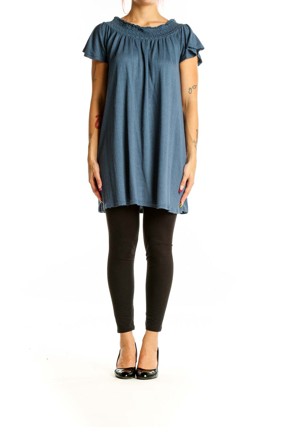 Embrace effortless style with this charming blue mini dress from O'Neill. The flowy silhouette features an off-shoulder neckline with delicate smocking, creating a feminine and flattering look. Short flutter sleeves add a touch of whimsy, while the lightweight fabric blend of elastane, polyester, and viscose ensures comfort and ease of movement. The dress falls to a versatile mini length, perfect for warm days or nights out. In excellent condition, this piece is ideal for casual outings or beach vacations. The relaxed fit and soft blue hue make it a versatile addition to any wardrobe, easily dressed up or down for various occasions.