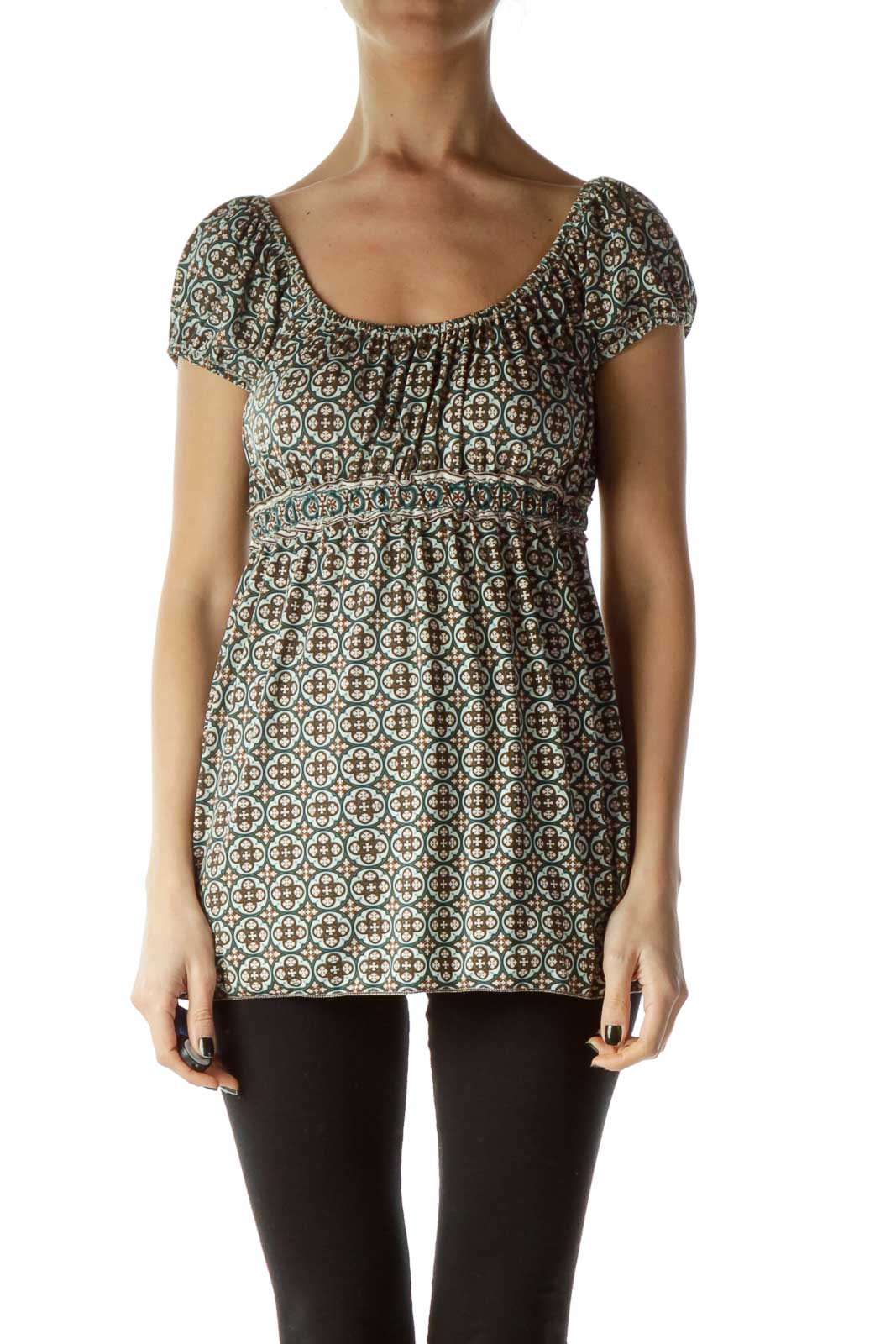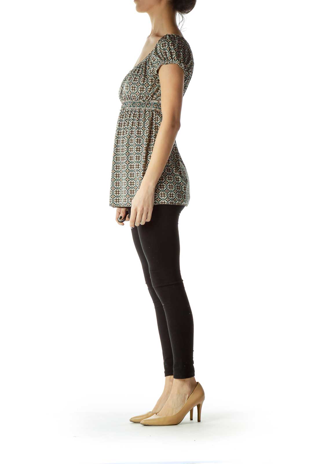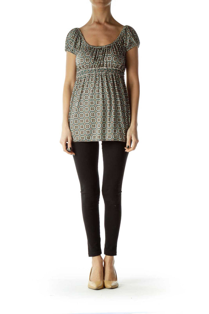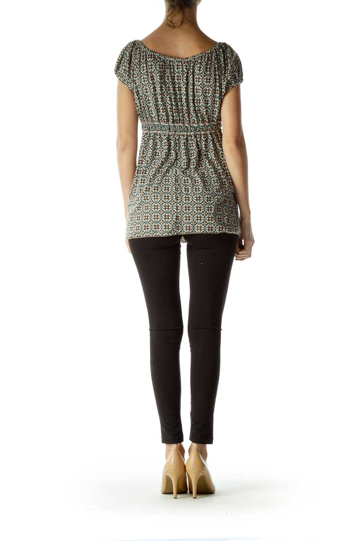 Brown Green Off-Shoulder Print Blouse
