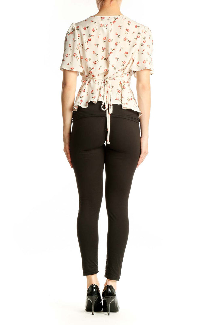 Back view of cream floral Papermoon blouse showing flutter sleeves and fitted waist