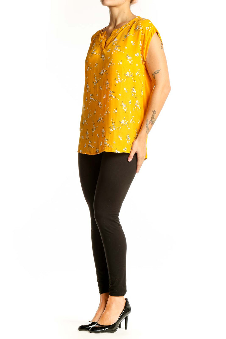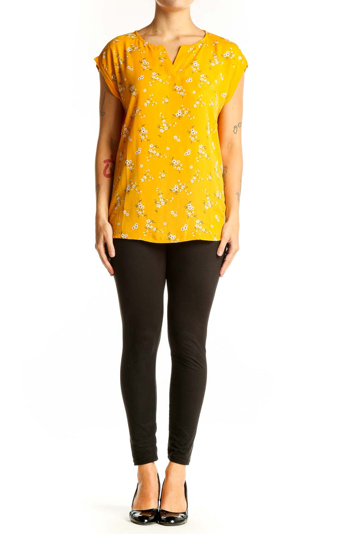 Yellow Floral Print Short Sleeve Blouse