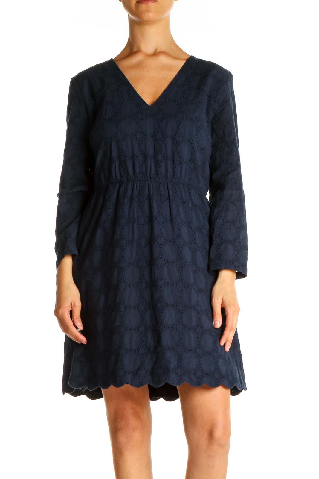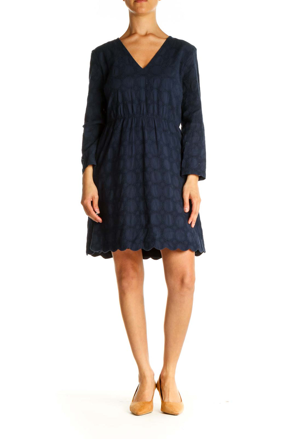 • Measurements: Bust 34", Hips 42", Length 34", Waist 28"