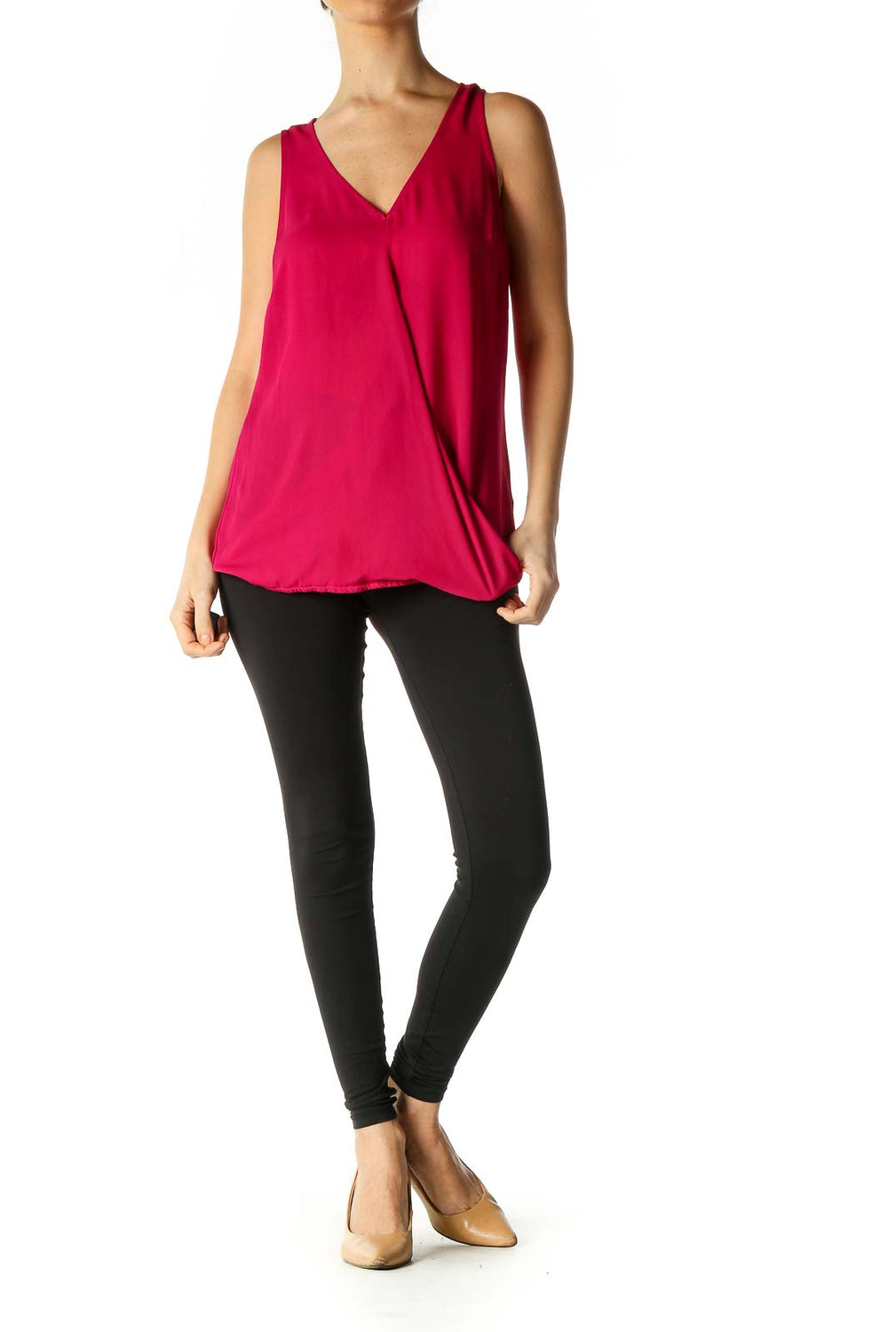 Pink Solid Casual Sleeveless Blouse