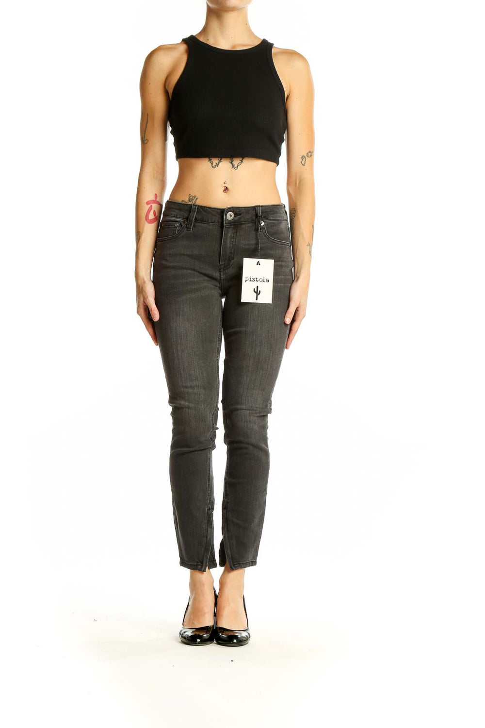 Step out in style with these chic charcoal gray ankle jeans from Pistola. Crafted from a comfortable blend of cotton, polyester, rayon, and spandex, these slim-fit pants offer both flexibility and durability. The sleek design features a mid-rise waist and a flattering ankle length, perfect for showcasing your favorite footwear.