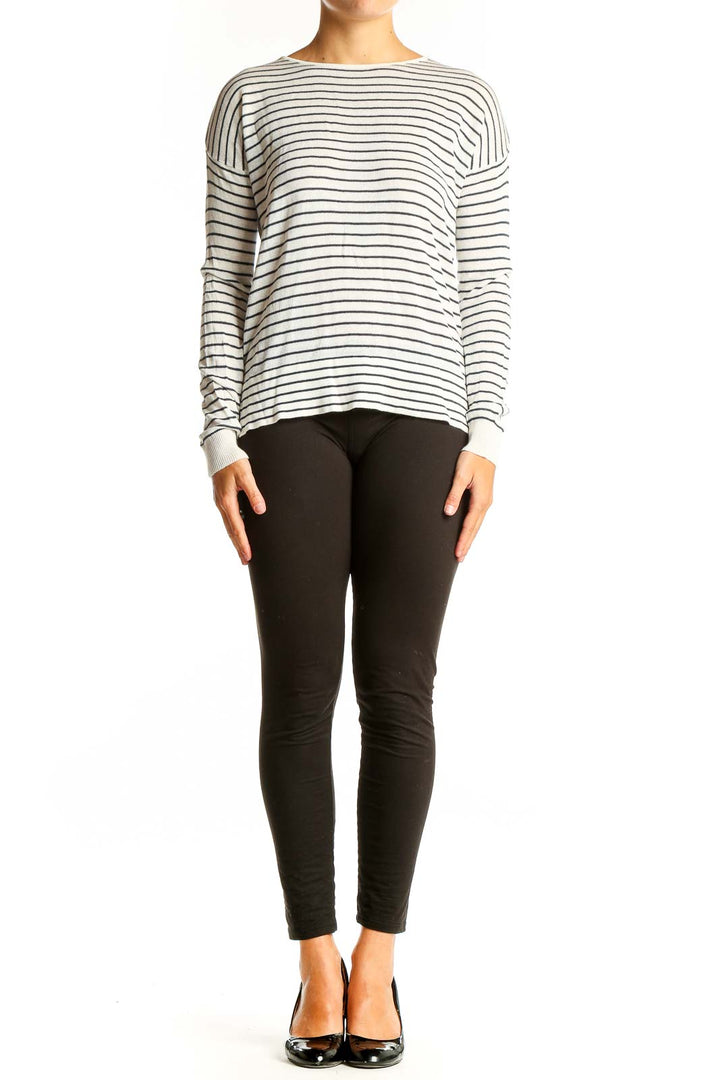 White Striped Long Sleeve Knit Top
