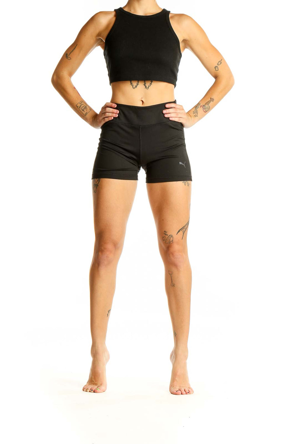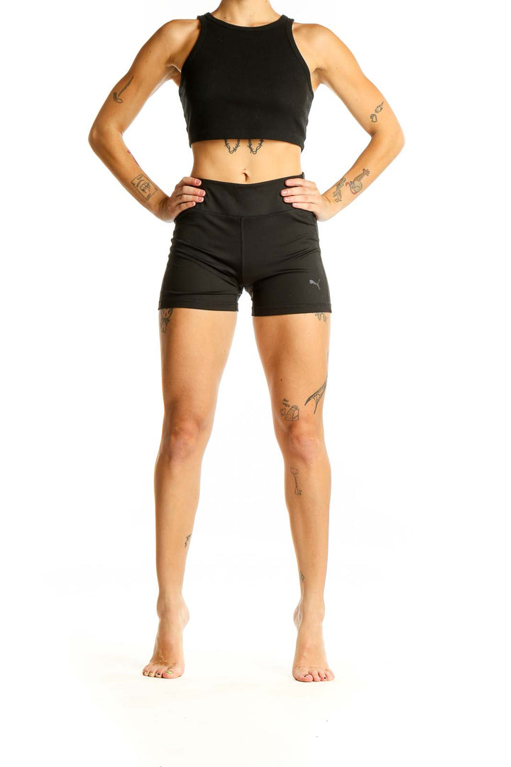 Elevate your workout wardrobe with these sleek black high-waisted athletic shorts from Puma. Designed for comfort and performance, these shorts feature a flattering high-rise waistband that provides excellent support during your most intense workouts. The form-fitting silhouette offers a streamlined look while allowing for a full range of motion.