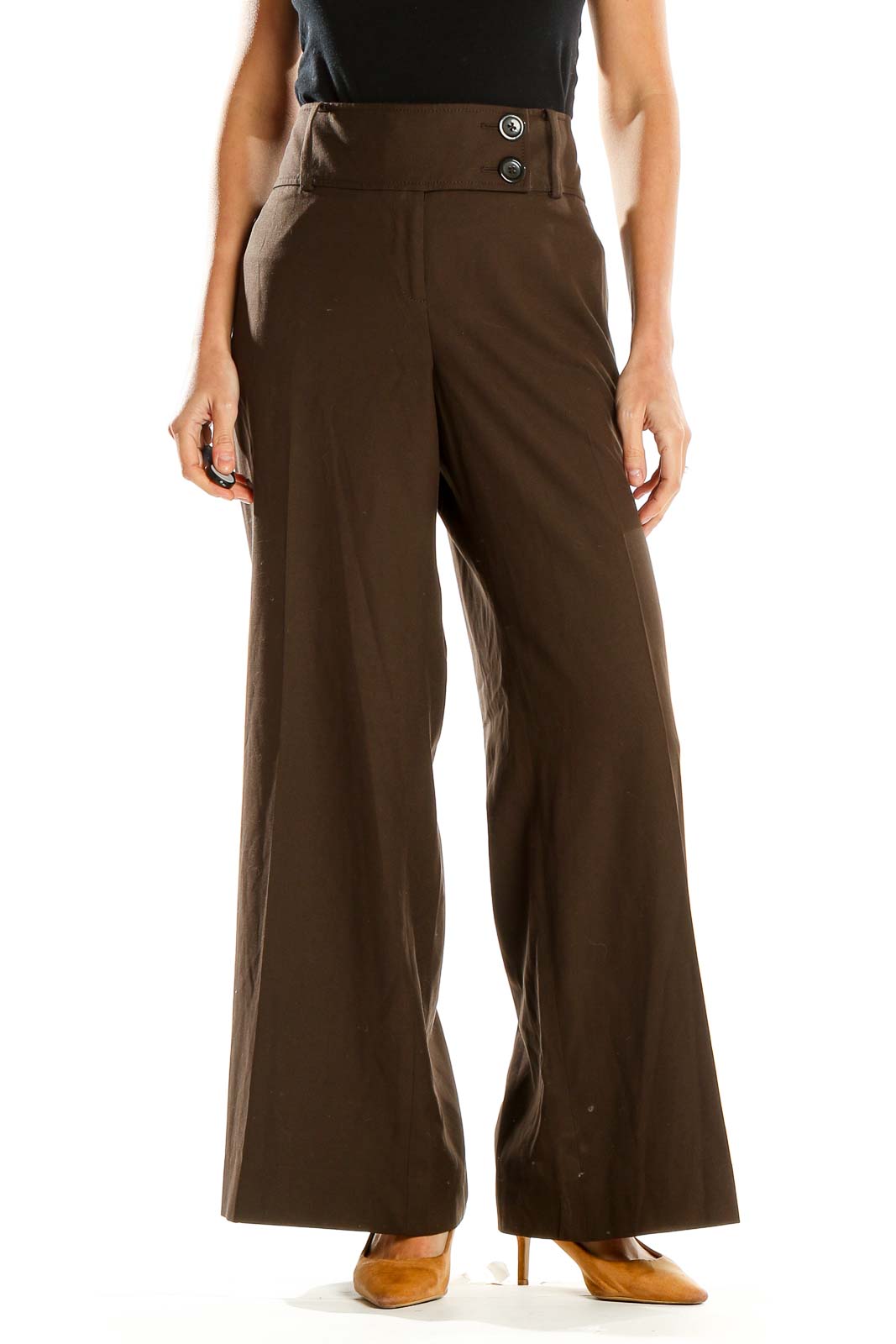 Featuring a sleek button closure at the waist, these trousers exude a polished appearance. The rich brown hue is versatile, easily pairing with a variety of tops and accessories. Made with quality materials, these pants promise durability and maintain their shape throughout the day.